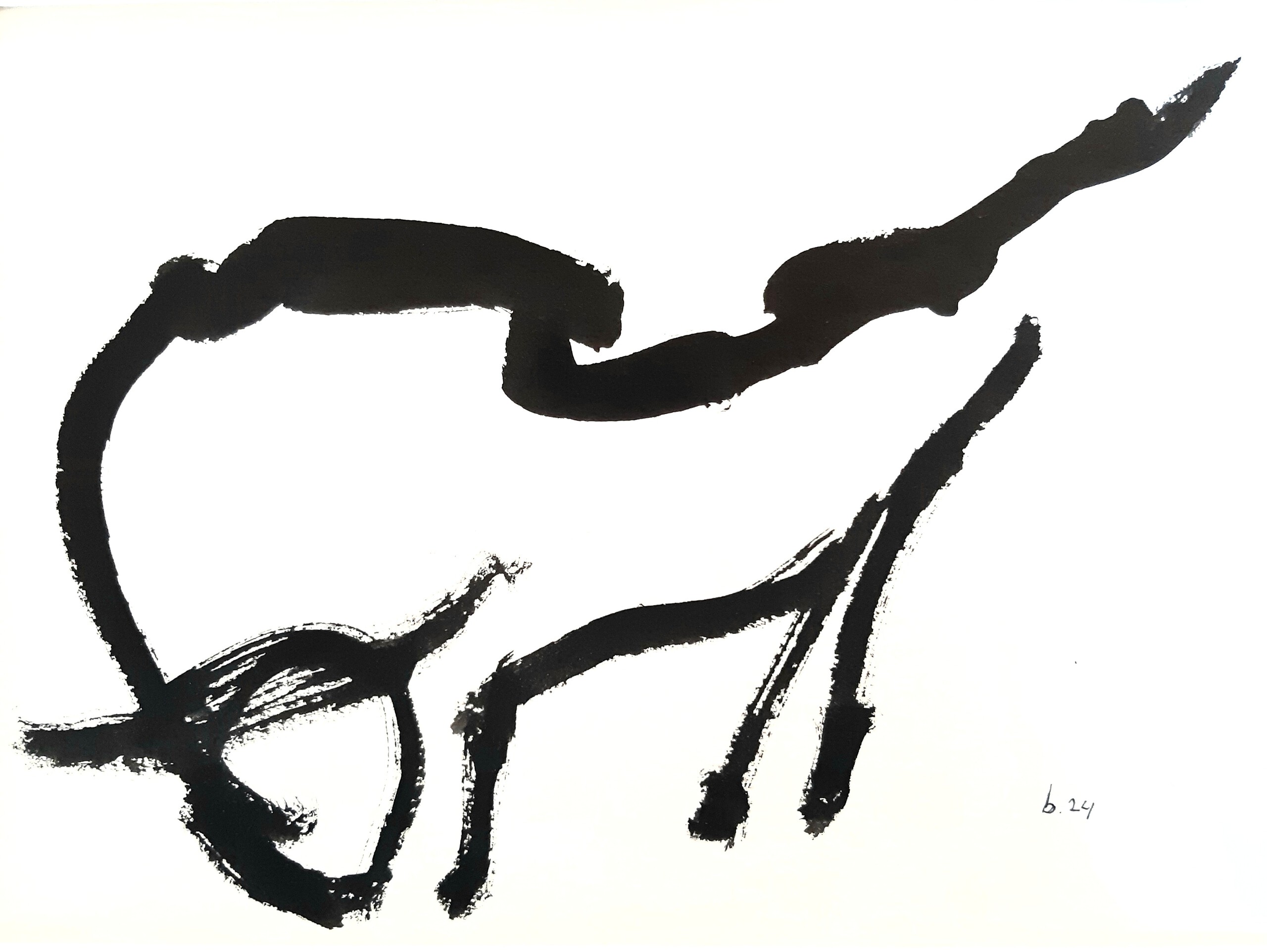 stier in 1x neergezet na een flink aantal voorstadia, om de vorm in de vingers te krijgen. inkt incl. houten lijst