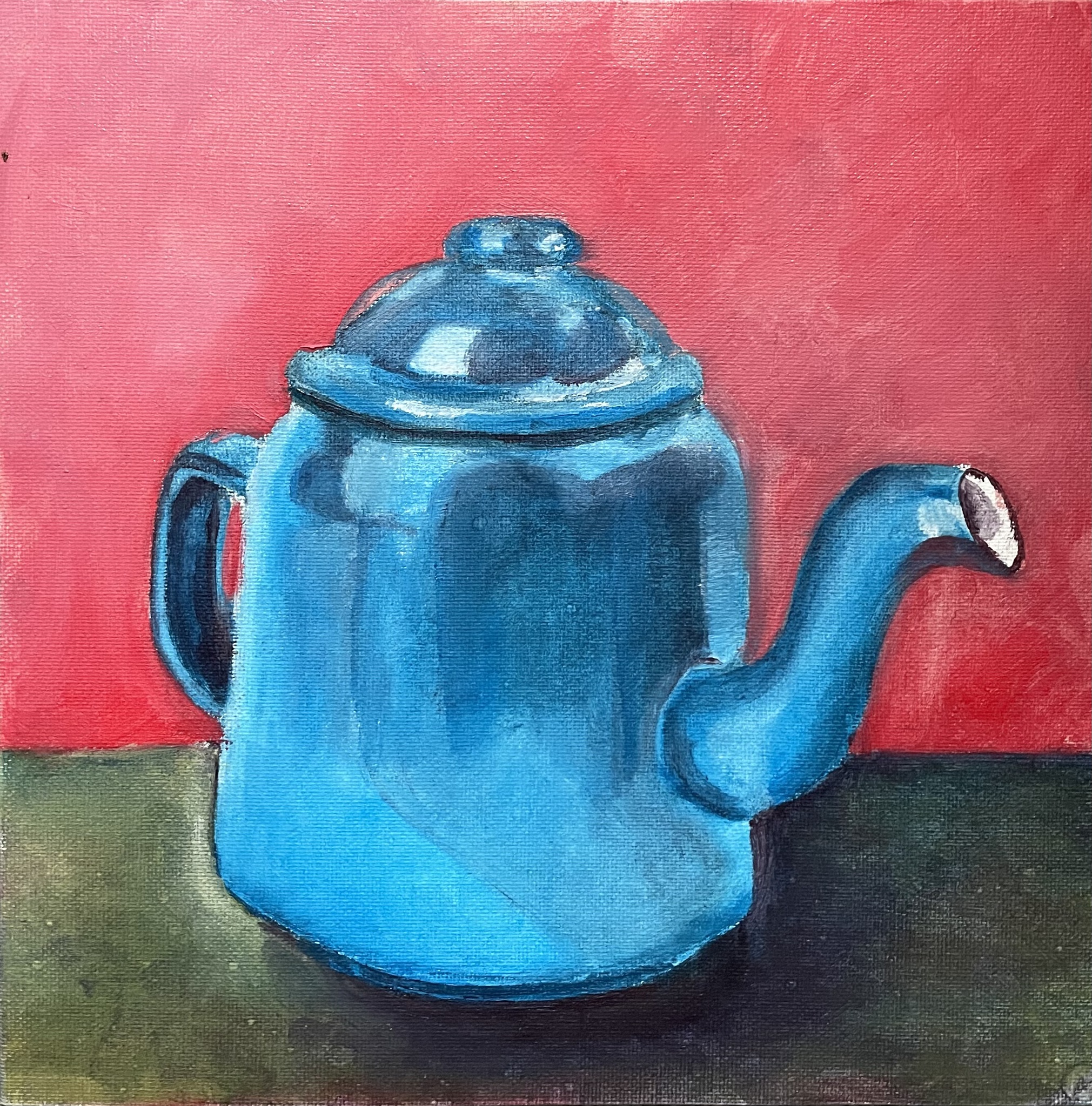 Een studie van een stilleven van een theepot. Kleuren niet naar waarneming.