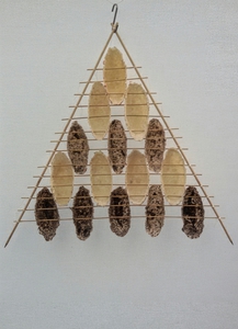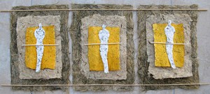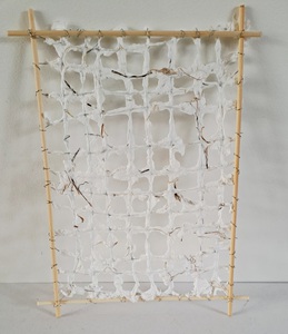 Monique Ramakers, geboren in Limburg, in 1952. In 2004 ben ik begonnen met o.a. papierscheppen . Ik gebruik vaak katoen vermengd met plantenvezels, die eerst bewerkt worden.