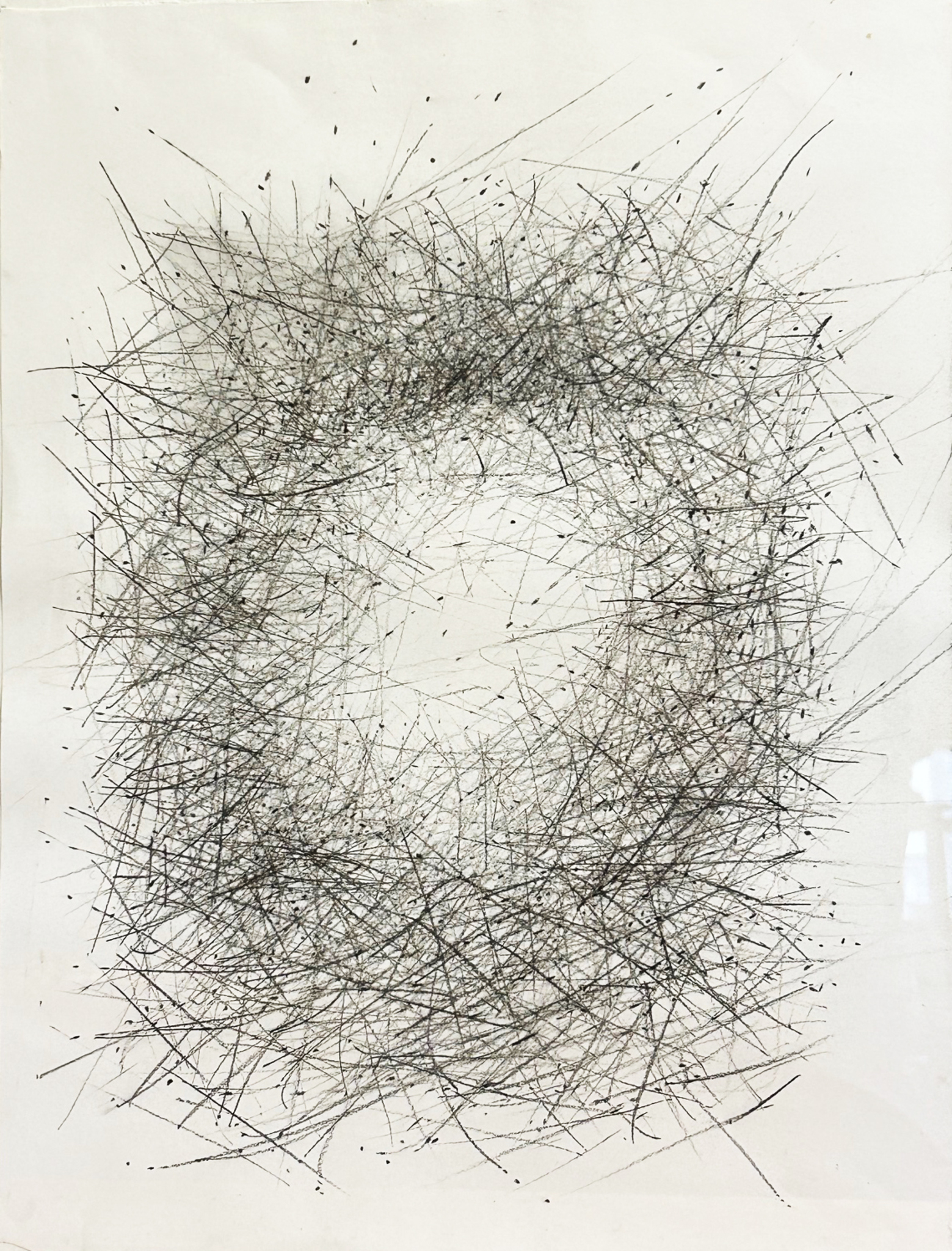 Als ik teken ontstaat er al krassend een niemandsland van duisternis en licht, van voelen en zien.