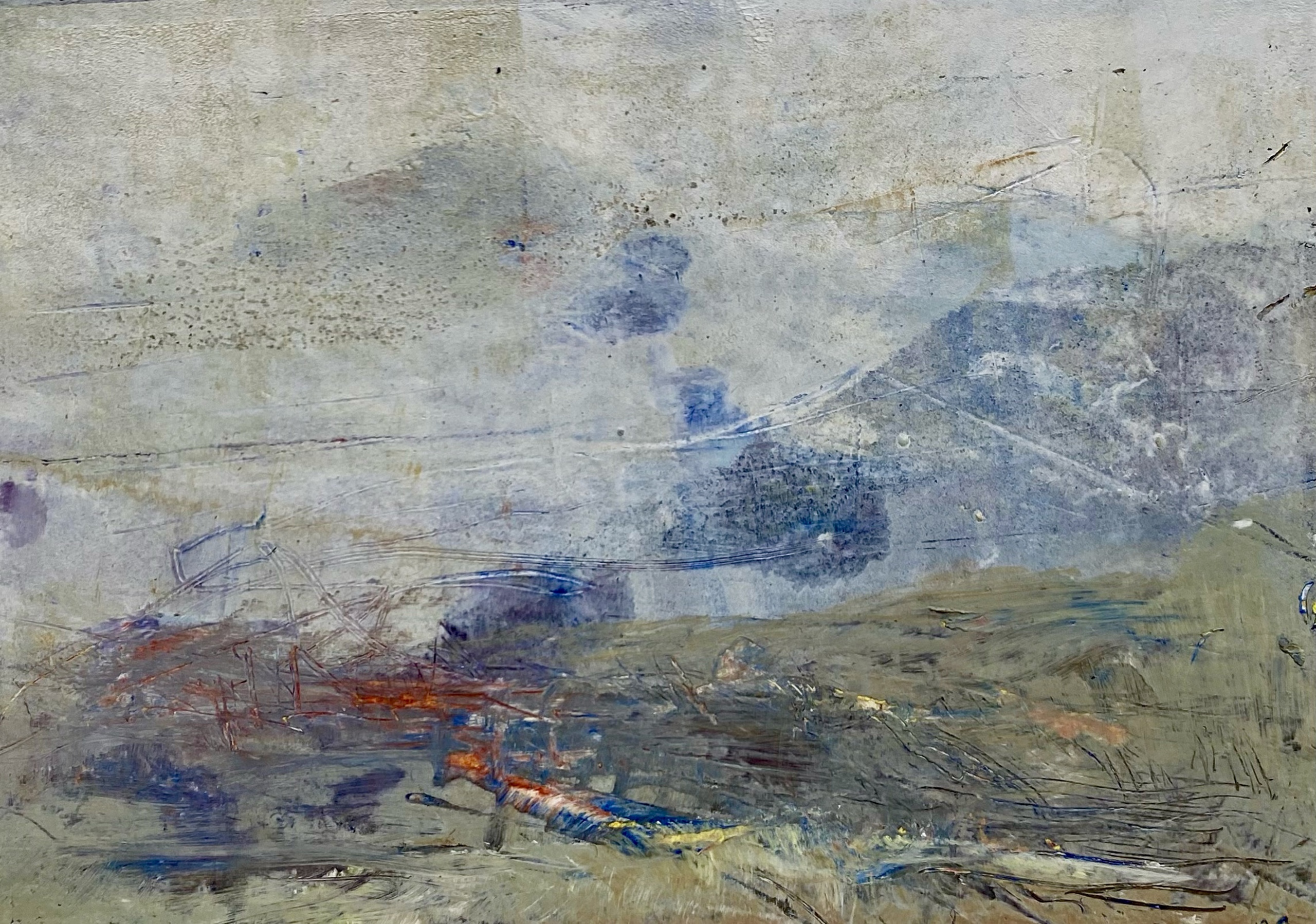 Coldwax en Olieverf op papier, op 3cm dik multiplex gelijmd