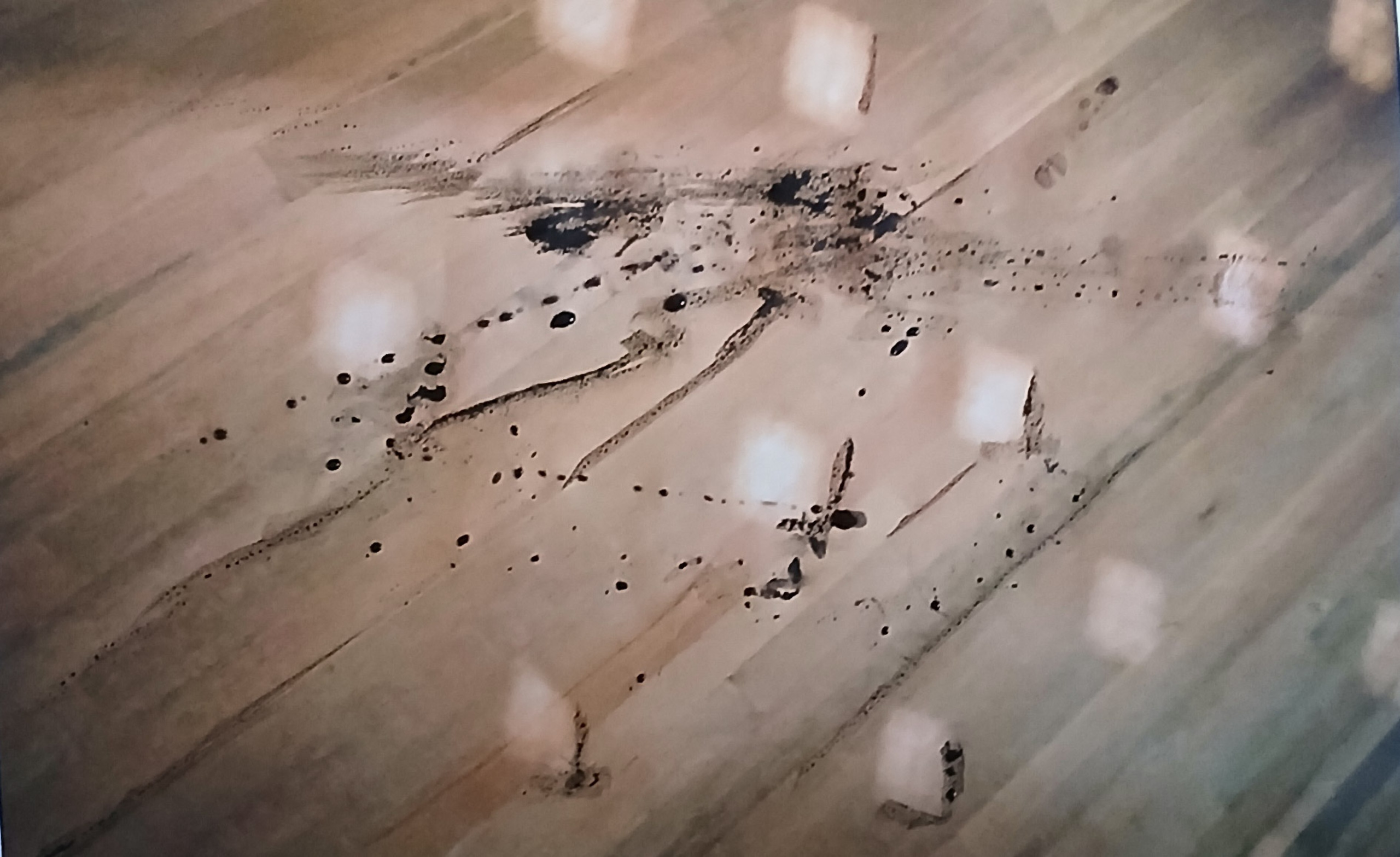 Tijdens een bezoek aan het bonnefanten museum Maastricht maakte ik deze foto van een weerspiegeling van de belichting op de vloer. Dit heb ik weer beschilderd