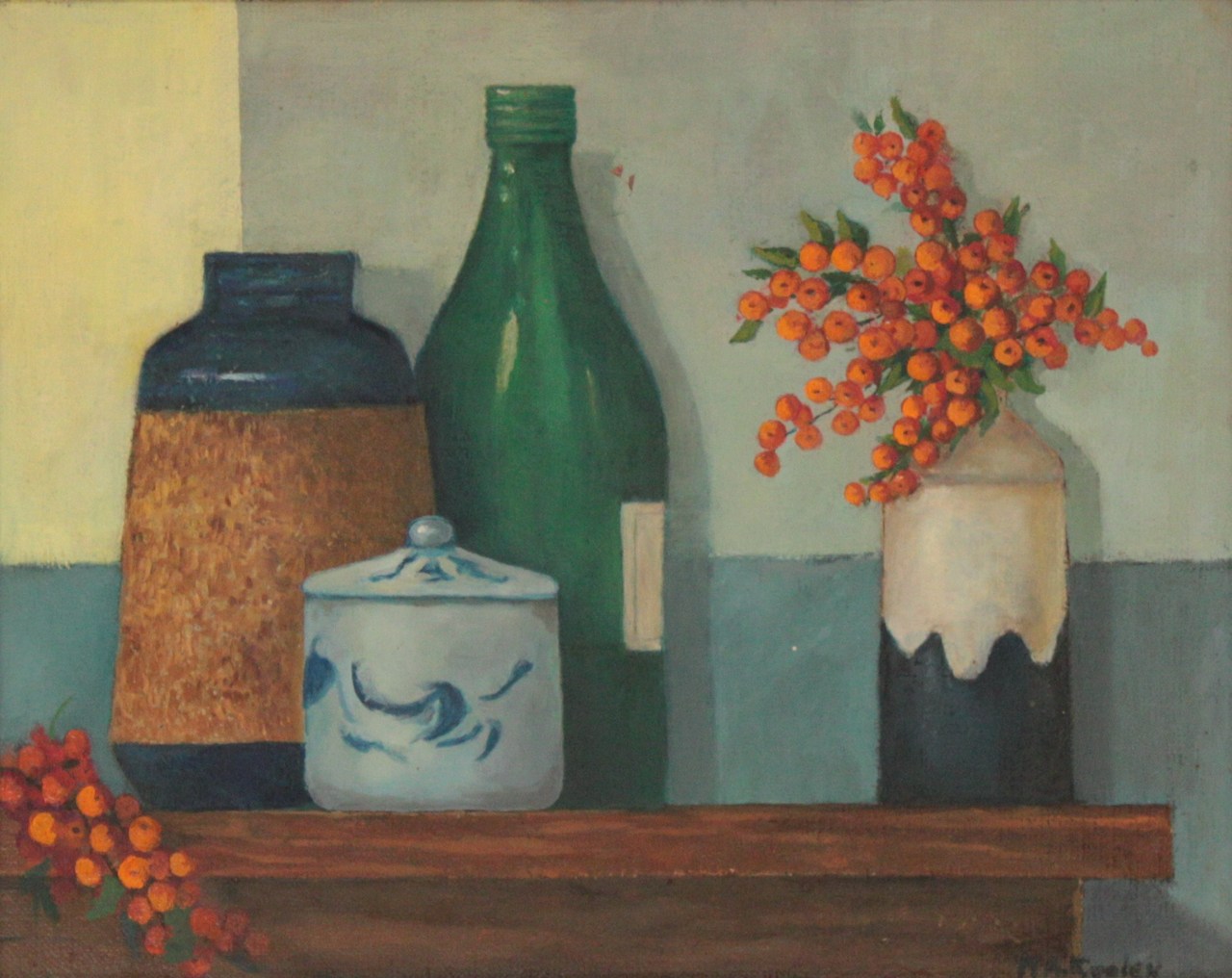 stilleven met rechts bessen in vaasje