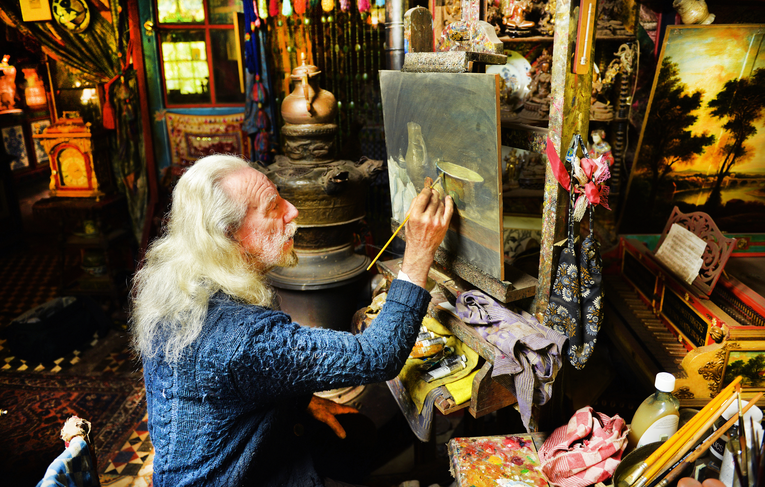 Dit is Cornelis le Mair, hij maakt onder andere schilderijen, maar ook muziekinstrumenten, meubels, beelden etc... hij heeft een voorkeur voor de oude meesters en sowieso voor de verleden tijd!! Hij woond in het buitengebied van Eindhoven in een oude verbouwde boerderij met een stuk land eromheen, en in en om het huis vind je overal zijn "sporen", het is een soort van terug in de tijd reis!