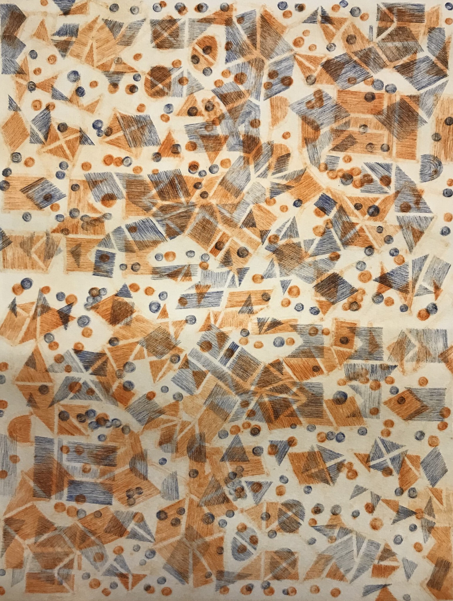 Josée Wuyts maakt subtiel met de droge naald abstracte tekens die samen een beweging en ritme laten zien.