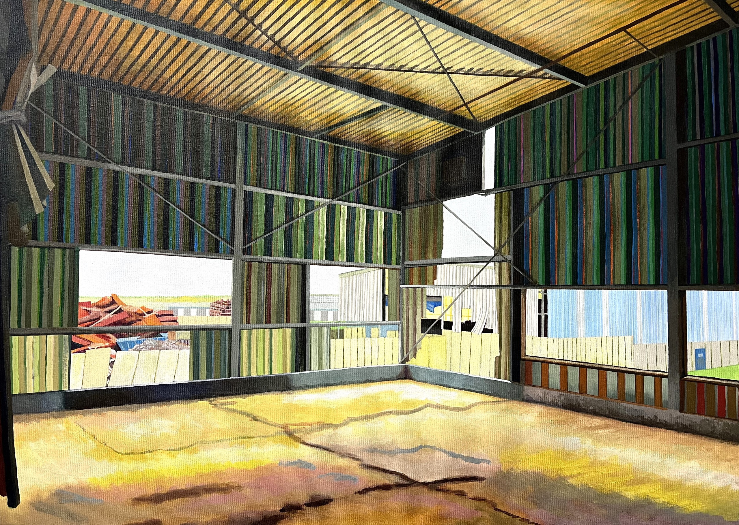 Schilderij Aluminium Bouwwerk Uitzicht Gebouw Lineair Industrie Doorkijk Fabriek Aldel Farmsum