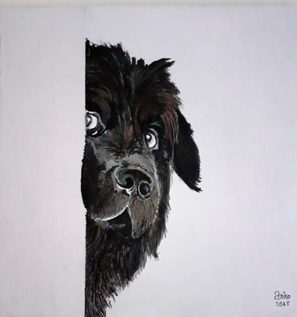 Hond Zwart Grijs Wit Bruin Acryl Realistisch