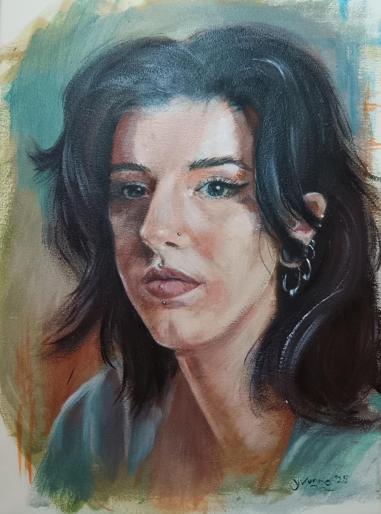 Basiscursus Portretschilderen, natuurlijk weer mijn prachtige dochters in plaats van het voorbeeld van de docent ;-) Sannah, acryl op doek, 30 x 40.