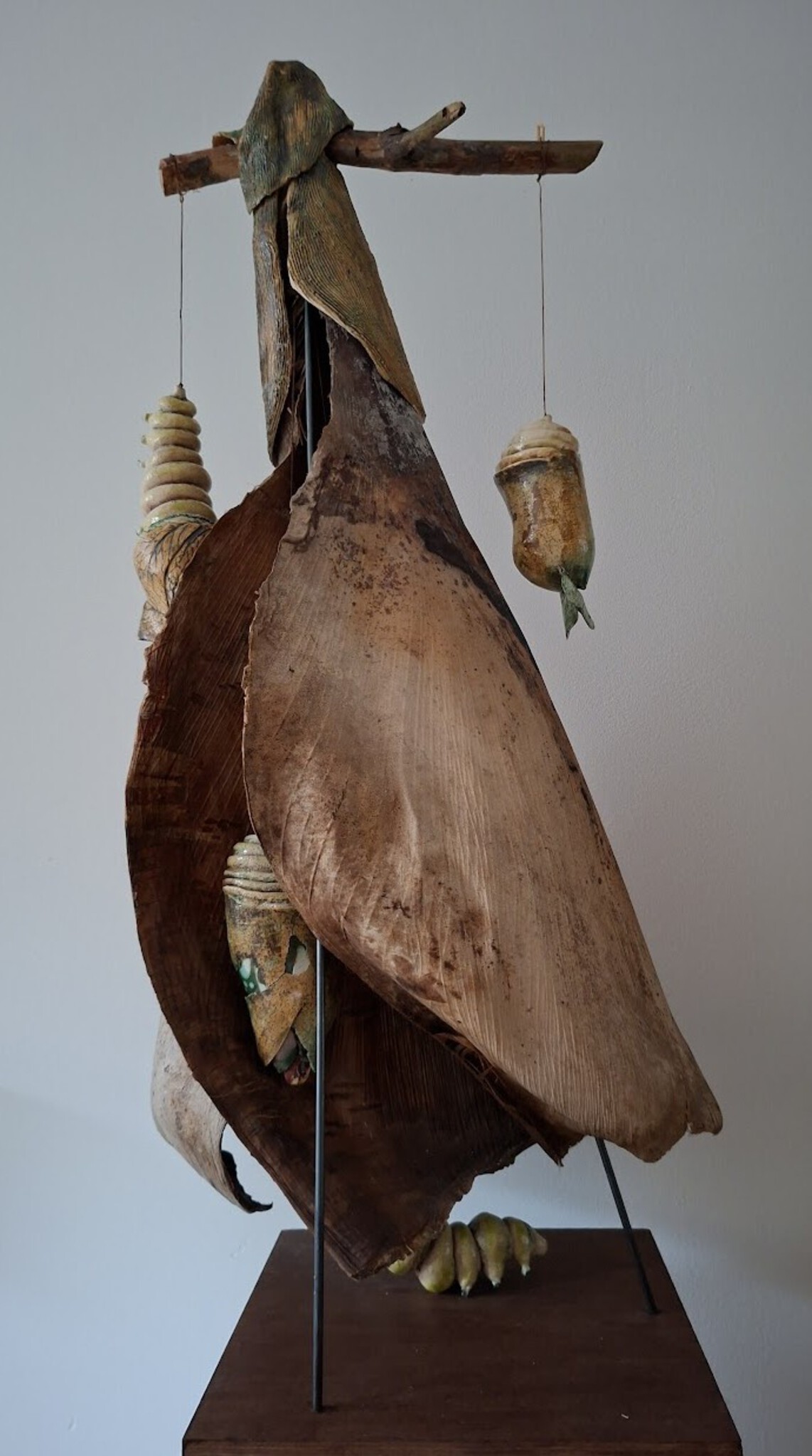 Nacht in de Nikau of 'Te Pó i te Nikau' (Maori), mixed media, Nikau bladeren, aardewerk, hout.
