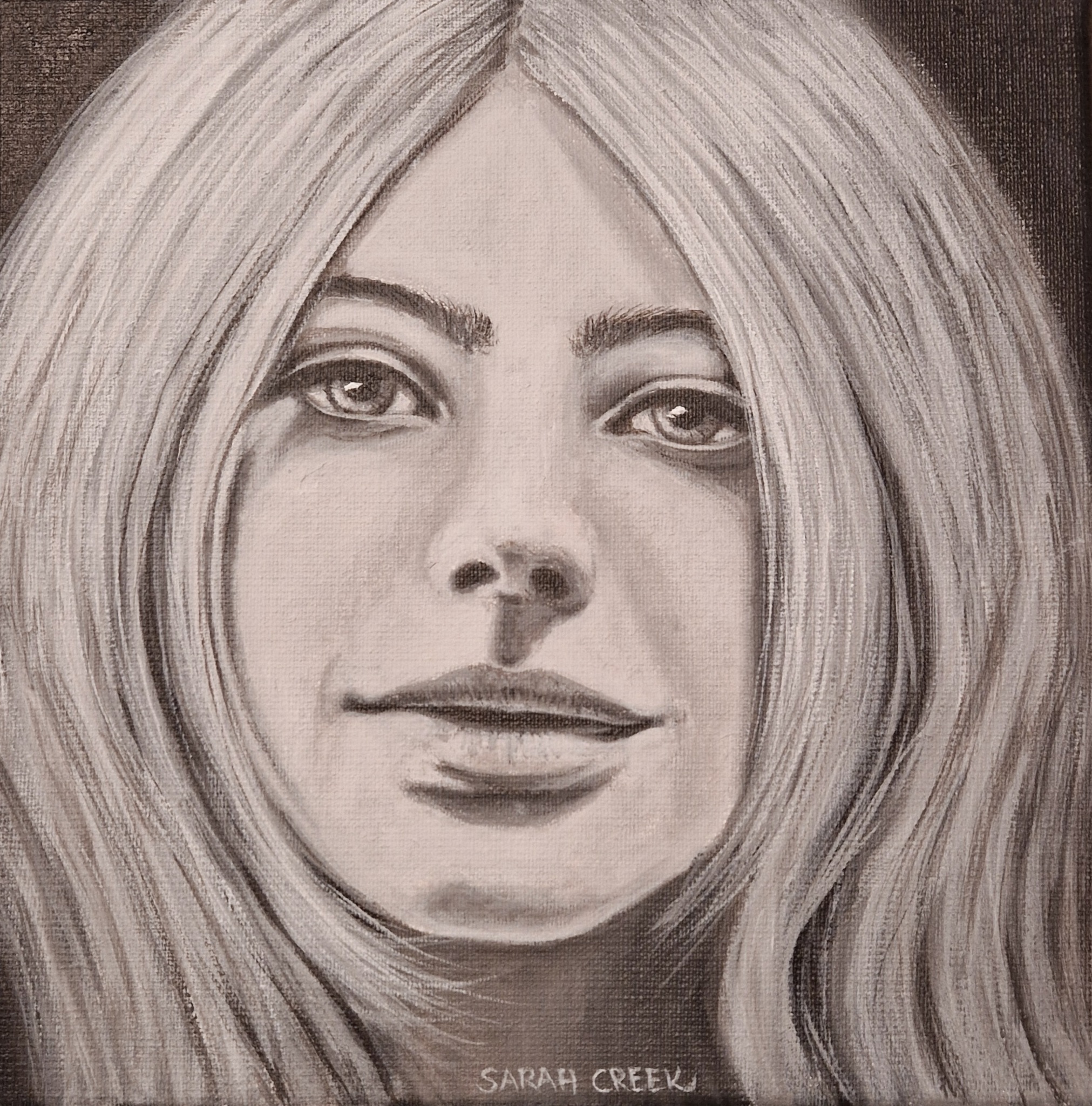 Sarah Creek schildert met acryl op canvas of linnen. Onderwerpen zijn portretten en stillevens. Sarah geeft les aan 55 talentvolle cursisten in een atelier aan huis.