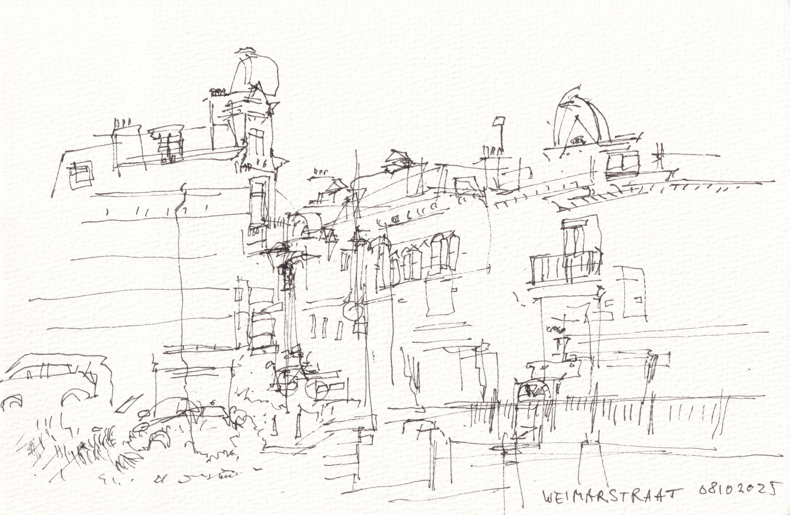 Schets van de Weimarstraat, vanaf de Conradkade, Den Haag.