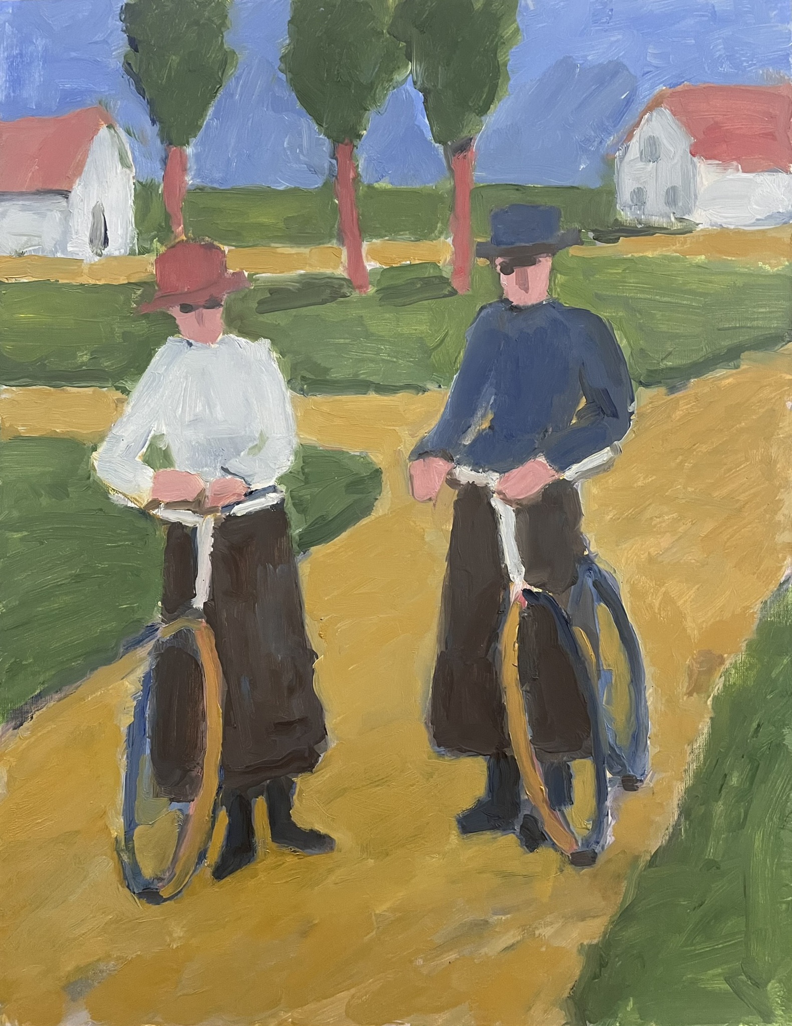 Ik schilder graag mensen in allerlei situaties, binnen of buiten. Een landschap of interieur zonder mensen kan mij ook inspireren.
