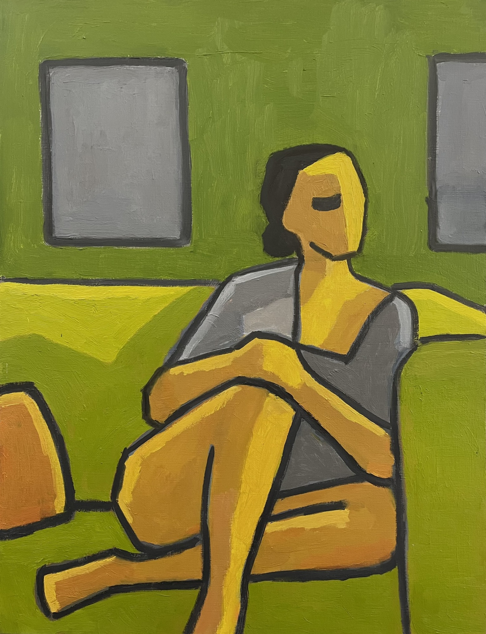 Ik schilder graag mensen in allerlei situaties, binnen of buiten. Een landschap of interieur zonder mensen kan mij ook inspireren.
