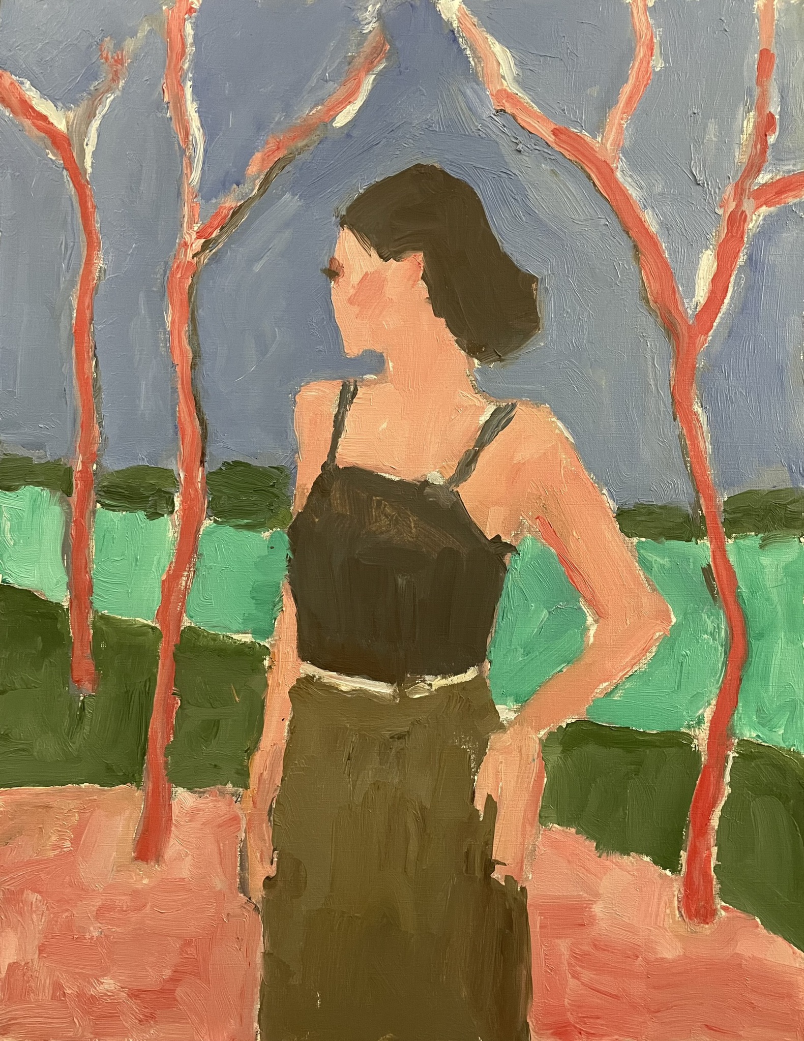 Ik schilder graag mensen in allerlei situaties, binnen of buiten. Een landschap of interieur zonder mensen kan mij ook inspireren.