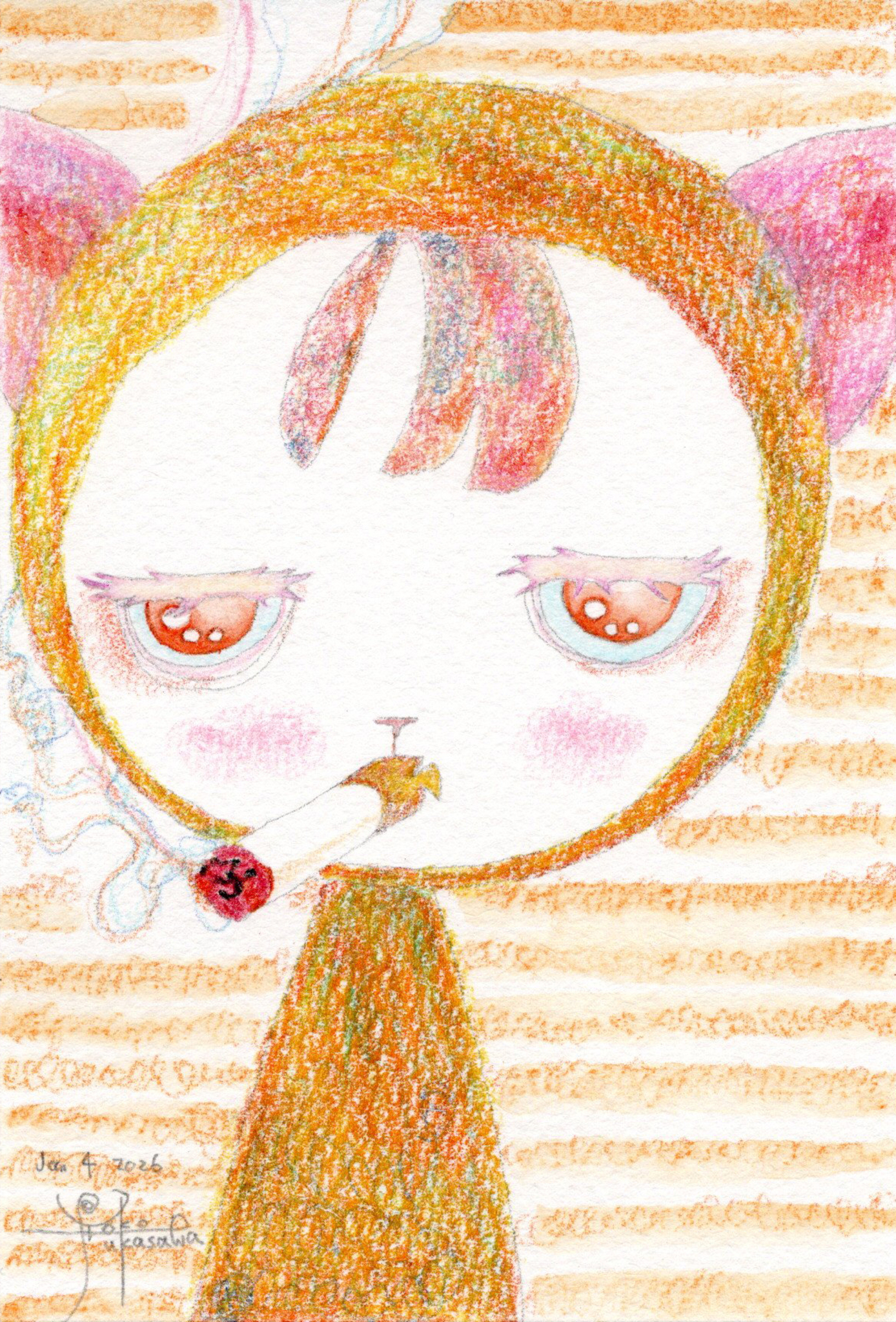Yoko Fukasawa was born in 1982. 2001-Japan traditional craft department,Metal crafts major 2001-Volkswagen new Beetle - art contest The third place. 2002-TOKYO DOME - Tableware festival Fine work. 2017-And Schizophrenia has been revealed. Her paintings are outsider art. They are characterized by simple shapes and bright colors. She wants you to look at them and relax.