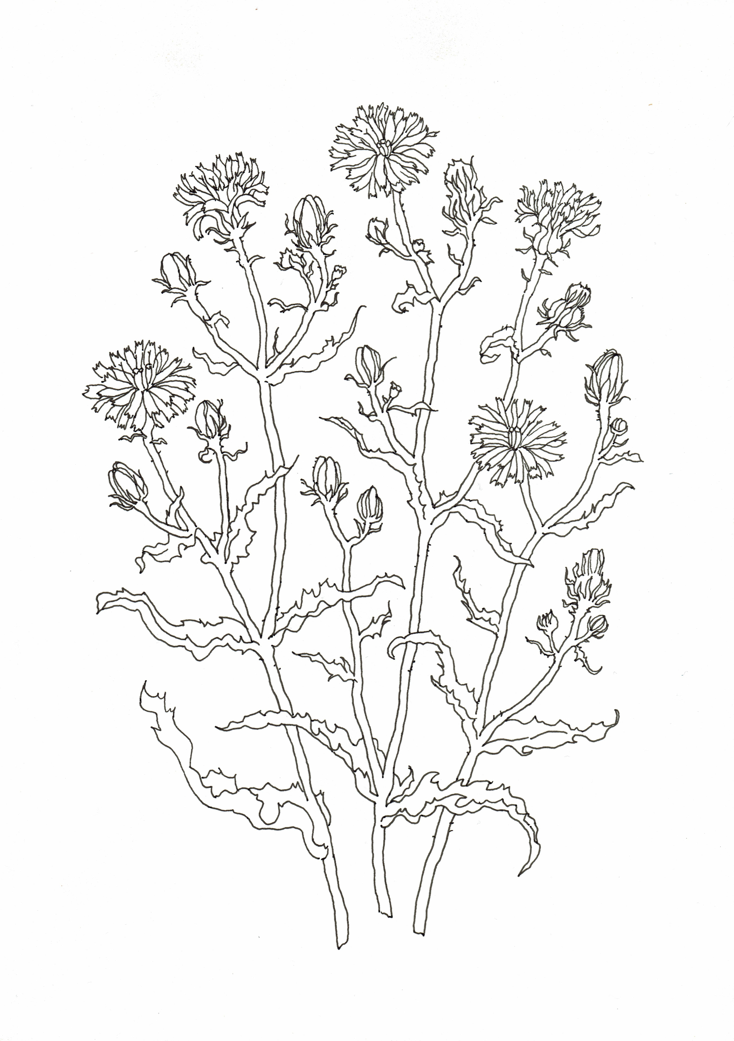 Bloem Plant Veldbloemen Tekening Inkttekening Bitterkruid Wildflowers Hawkweedoxtongue Drawing Inkdrawing