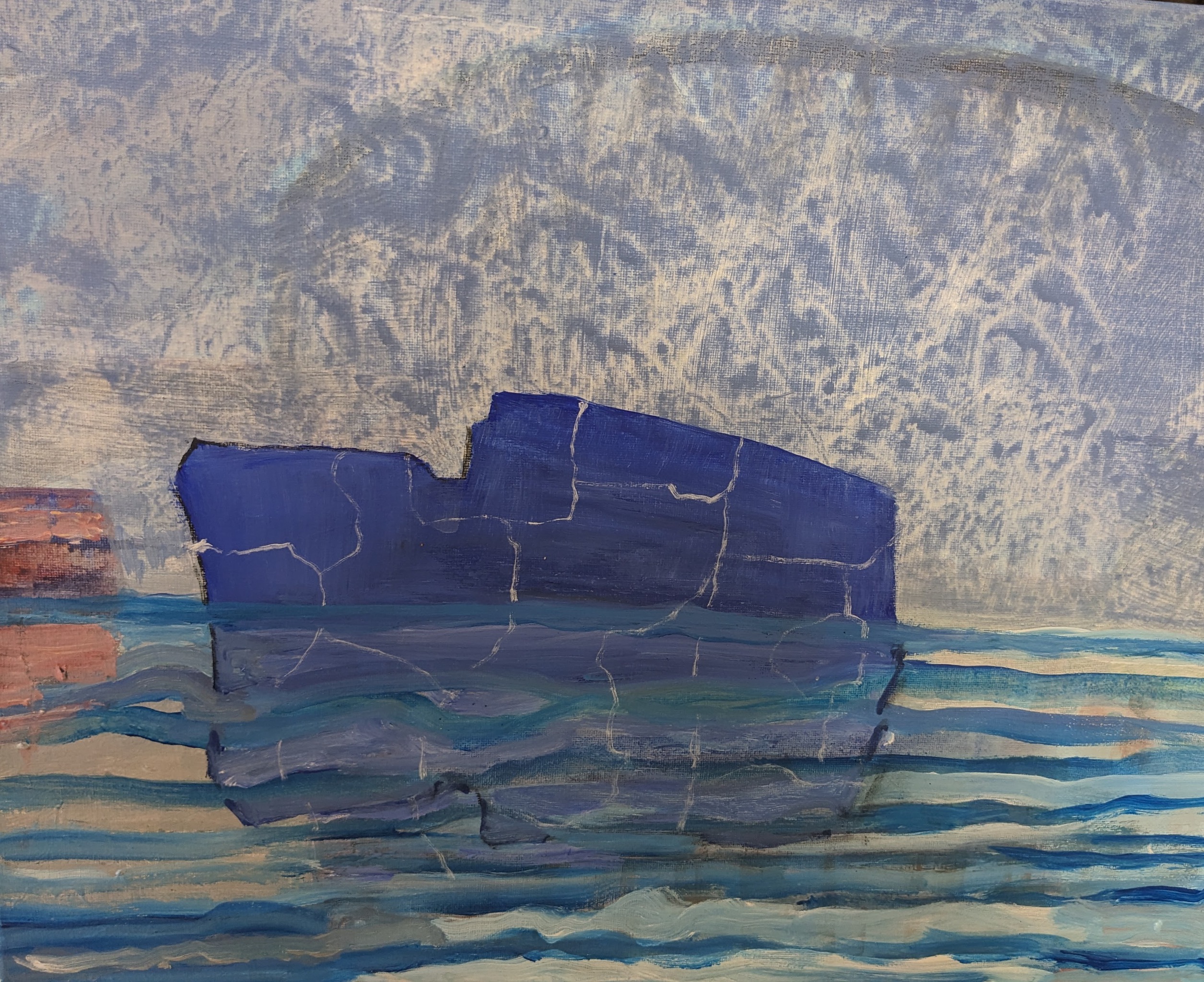 Smeltend ijs met wegdrijvend containerschip