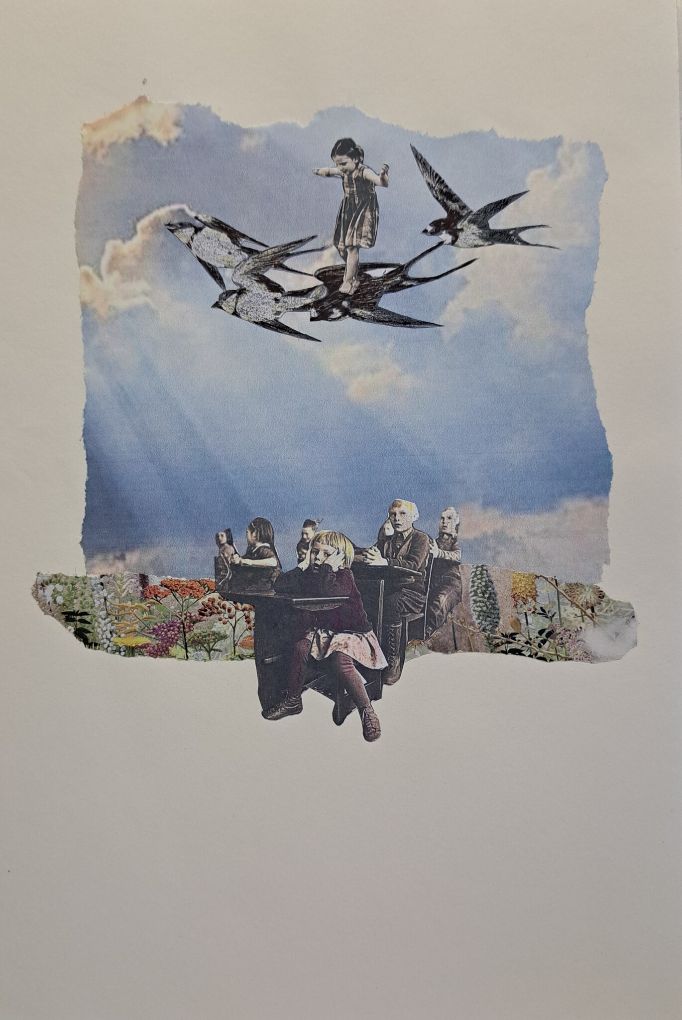Meisje Wolken Zweven Zwaluwen Rotsblok Schoolklas