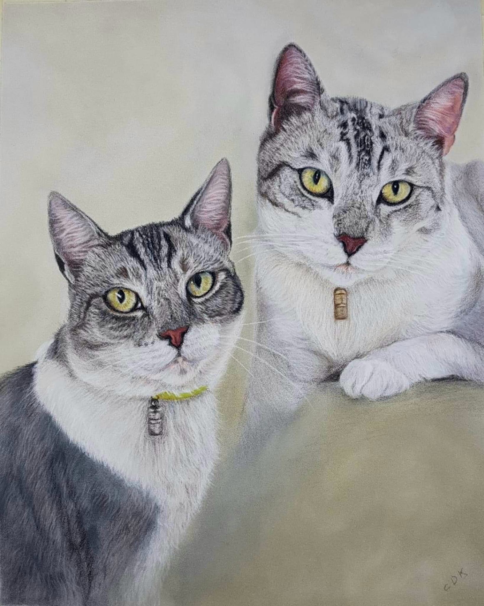Deze 2 lieve katten zijn zusjes, geschilderd op vraag van de klant.