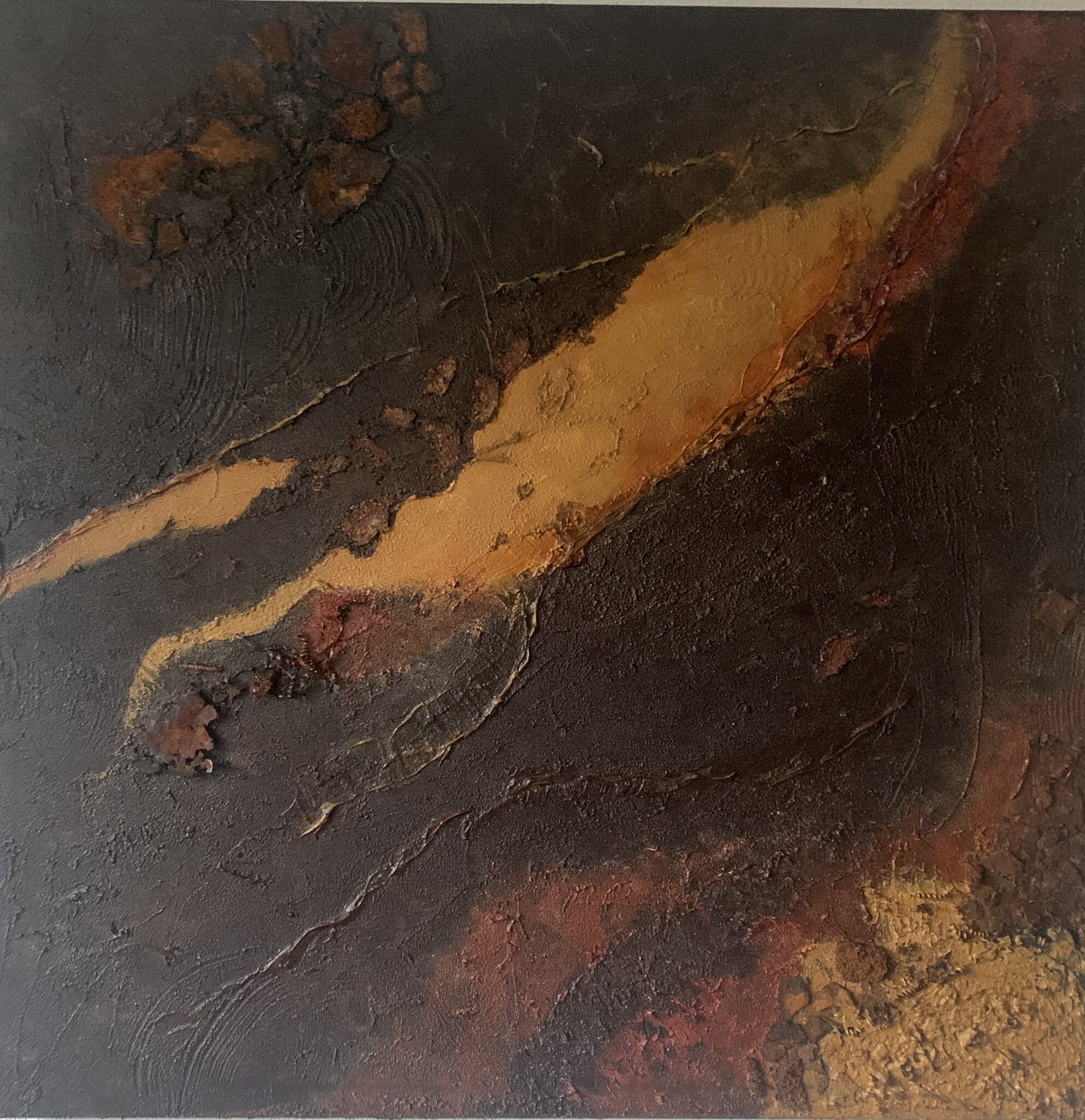 Materie schilderij met pasta, zand en roest