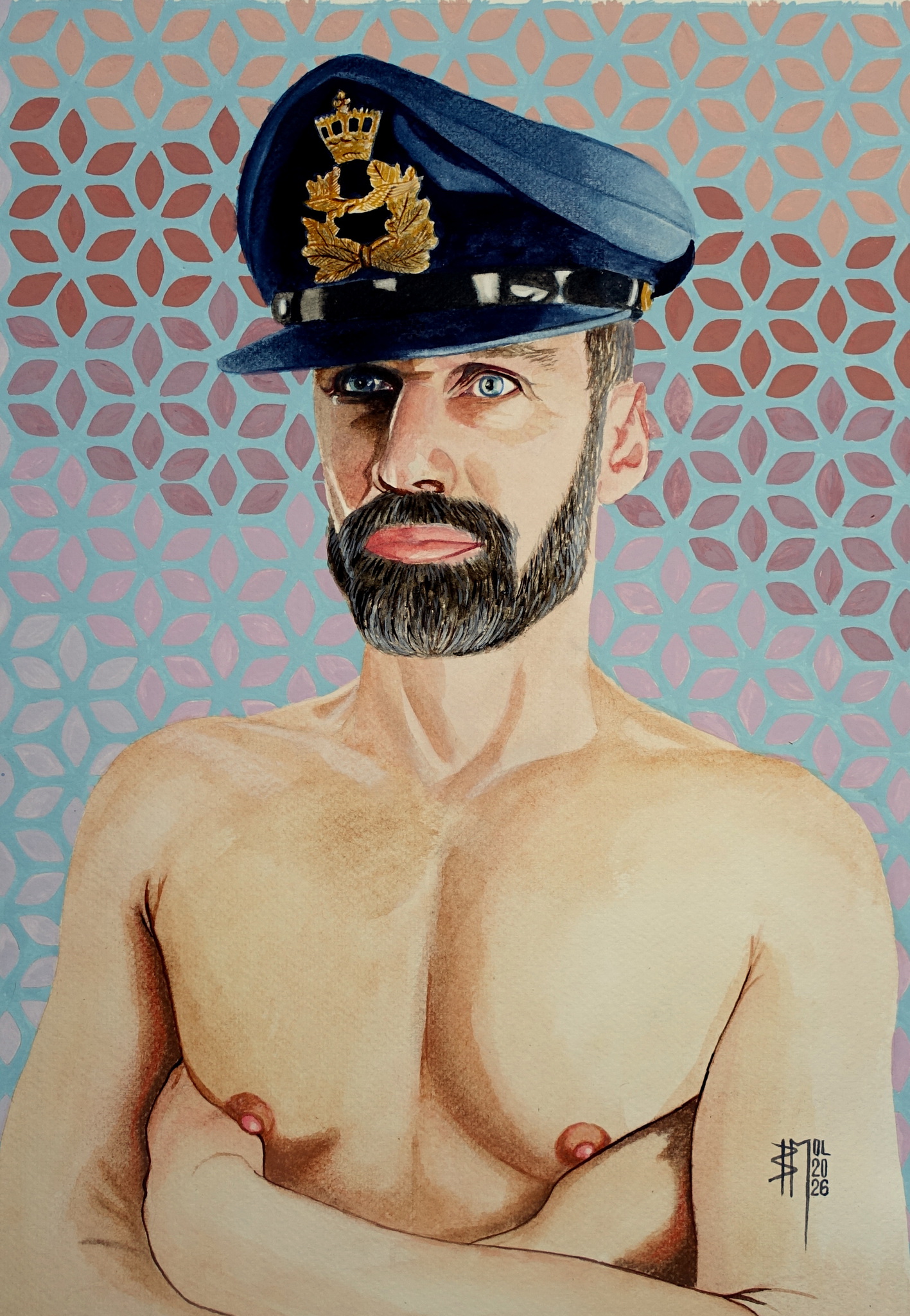 third painted portrait of my model Xavier . aquarel and gouache on cottonpaper. Size 60x50cm