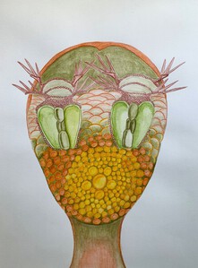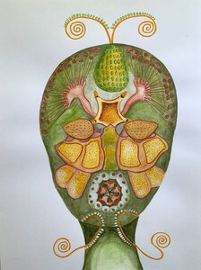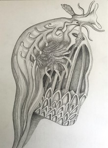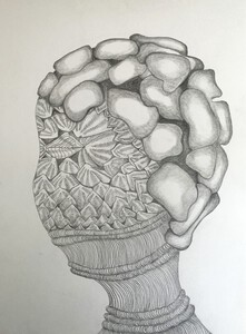 Op de kunstacademie heeft Marieke een historisch onderzoek gedaan naar het zelfportret. Haar werk is een verrassende spanning tussen het uiterlijk en de innerlijke inspiratie rond het hoofd.