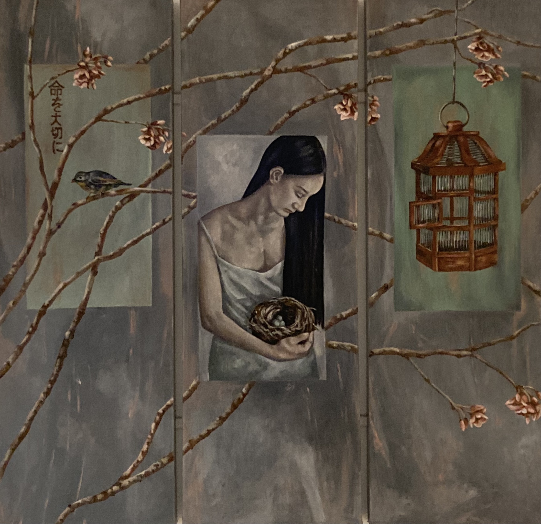 De Kersenbloesem omstrengelt het leven, bloeit prachtig die soms kort en soms lang is . Wat de natuur haar geeft met zijn grilligheid. Het is zoals in ons aardse leven dat begeleid wordt met de zang van de nachtegaal,zijn zang klinkt in moeilijke tijden door Hoop en Innerlijke vreugde.