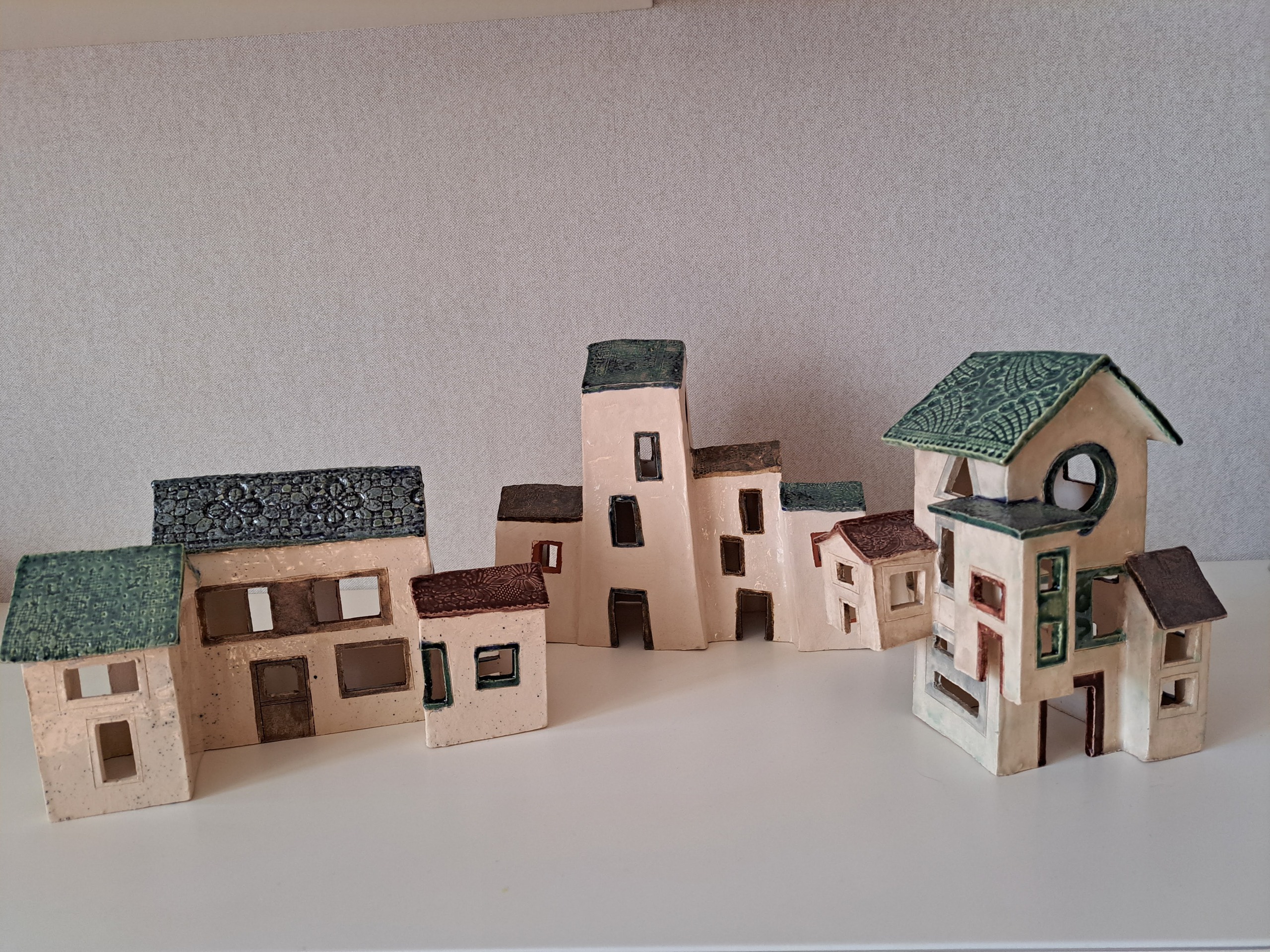 Drie verschillende huizengroepjes maken een mooi geheel. De afmeting is afhankelijk van hoe het geplaatst wordt.