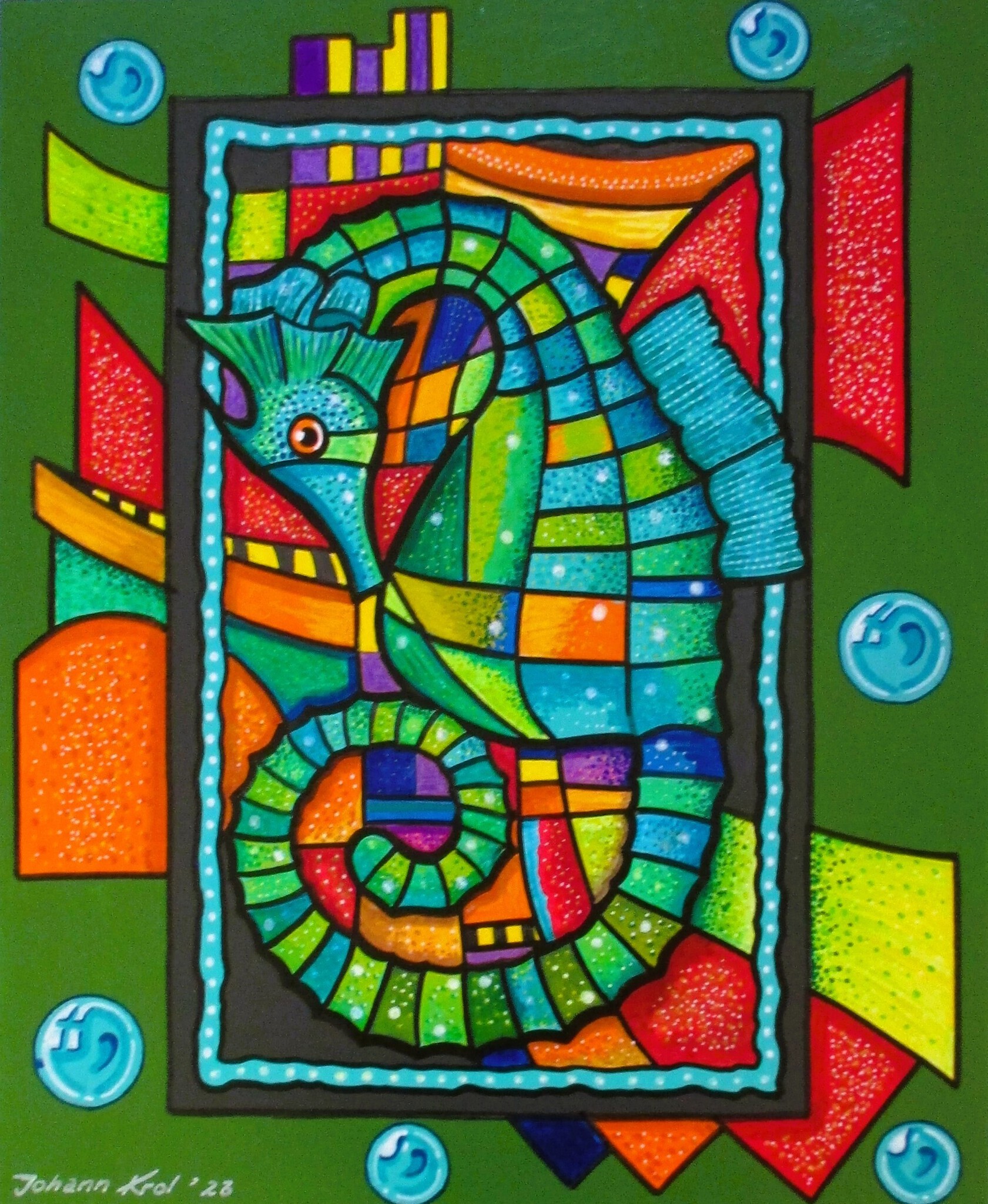 Mijn naam is Johann Krol, al vanaf mijn jeugd is tekenen en schilderen mijn grote passie. Werkte ik in mijn beginjaren voornamelijk met pen en inkt, kleurpotloden, stiften, en grafische technieken. Sinds een jaar of tien ook met olieverf, acrylverf, en pastel. Zowel realistisch als ook figuratief abstract. Waarin ik vaak speel met geometrische lijnen en bonte kleuren. Mijn onderwerpen bestaan dan ook uit alledaagse dingen, dieren, en mensen. Ook hou ik me bezig met het maken van wandschilderijen, sculpturen, en het ontwerpen van boekomslagen.