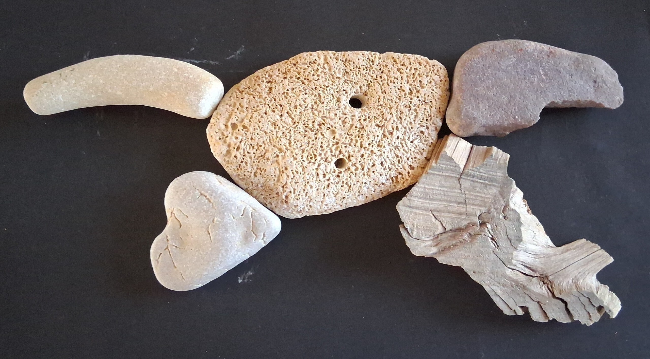 Rennende wolf, gemaakt van stenen en een stuk hout