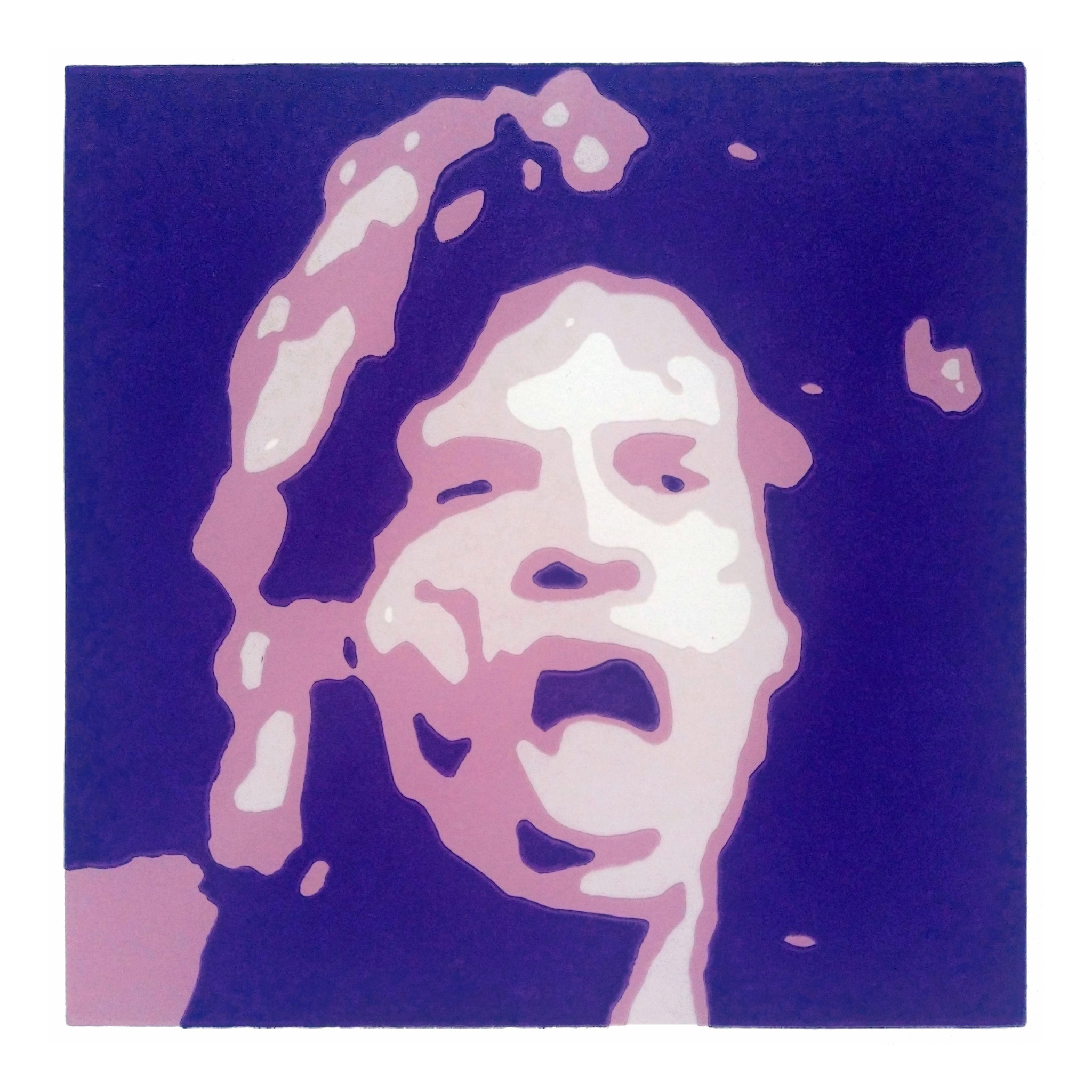 Leadzanger van de Rolling Stones. Meerkleuren linodruk.