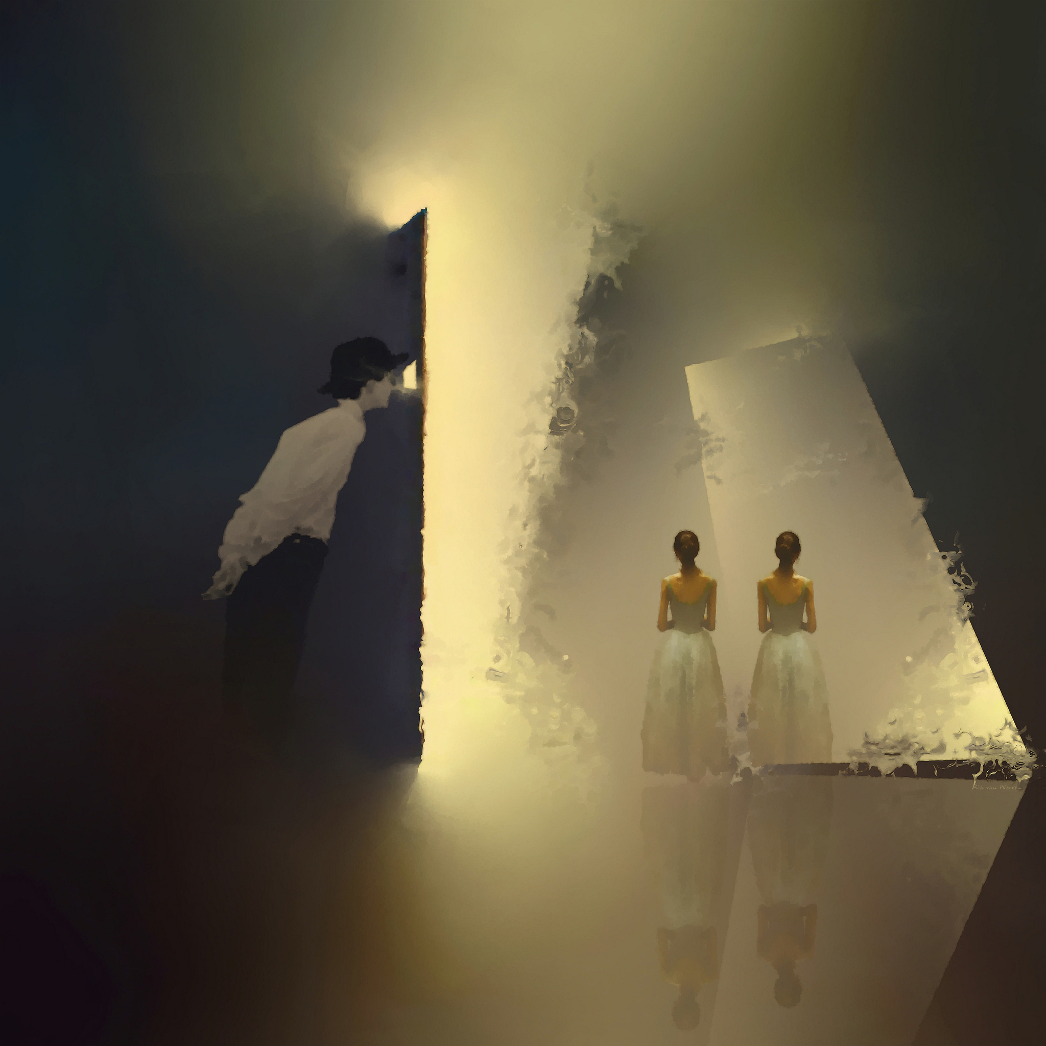 De Voyeur Geel Bruin Gespiegelde Geheimen Digital Art Surrealisme