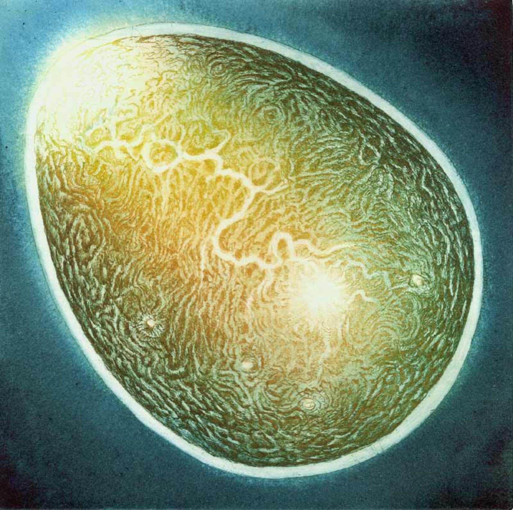 Ets Etching Art Kunst Organic Organisch Bliksemschicht Lightning-bolt Eureka-moment Hersenen Brain Eivorm Eggshape