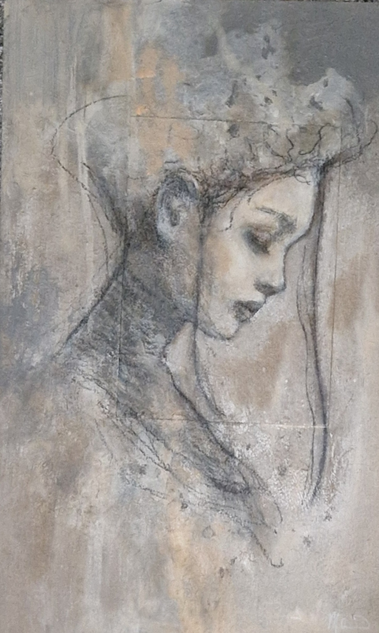 Marieke Samuels maakt schilderijen van vrouwengezichten. Het werk is kleurrijk en dynamisch en toch is er sprake van een pose en verstilling. Juist die tegenstrijdigheid maakt het werk interessant.