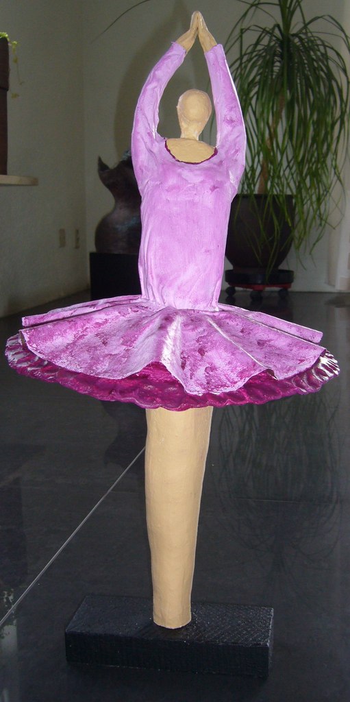 danseres met gemengde techniek gemaakt. Staat op sokkeltje van hout.