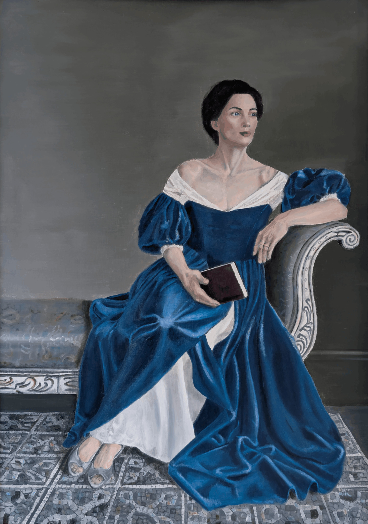 Verstild maar krachtig, zo zit deze zelfverzekerde vrouw. Er moest een moderne versie van een klassiek portret komen. Tijdens de voorbereiding kwam de voorliefde voor de portretten van Van Dijck naar voren, zijn werk is dan ook de inspiratiebron voor dit werk. Geen adidasjes, geen mantelpakje, tijdloosheid en innerlijke rust zouden de boventoon voeren in dit portret. Statig en contemplatief, stijlvol en onverstoorbaar.