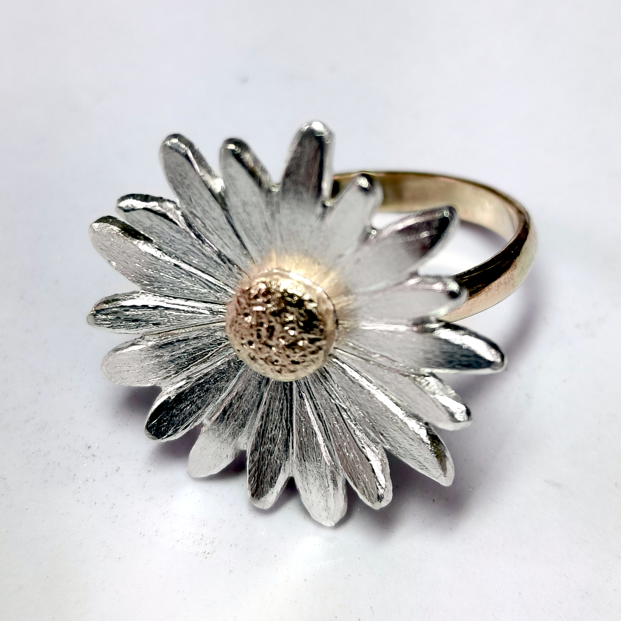 goud/zilveren ring met margriet bloem