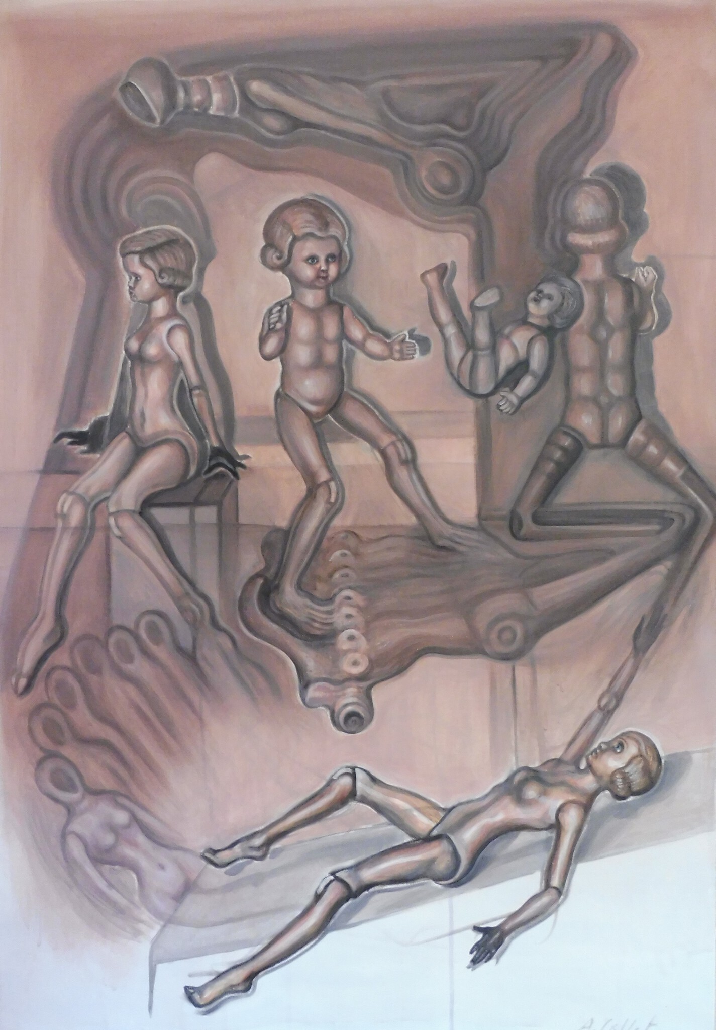 Schilderijen, tekeningen, beeldhouwwerken, collages, patchwork, poppen en meer beeldend werk van kunstenares Annick Collet