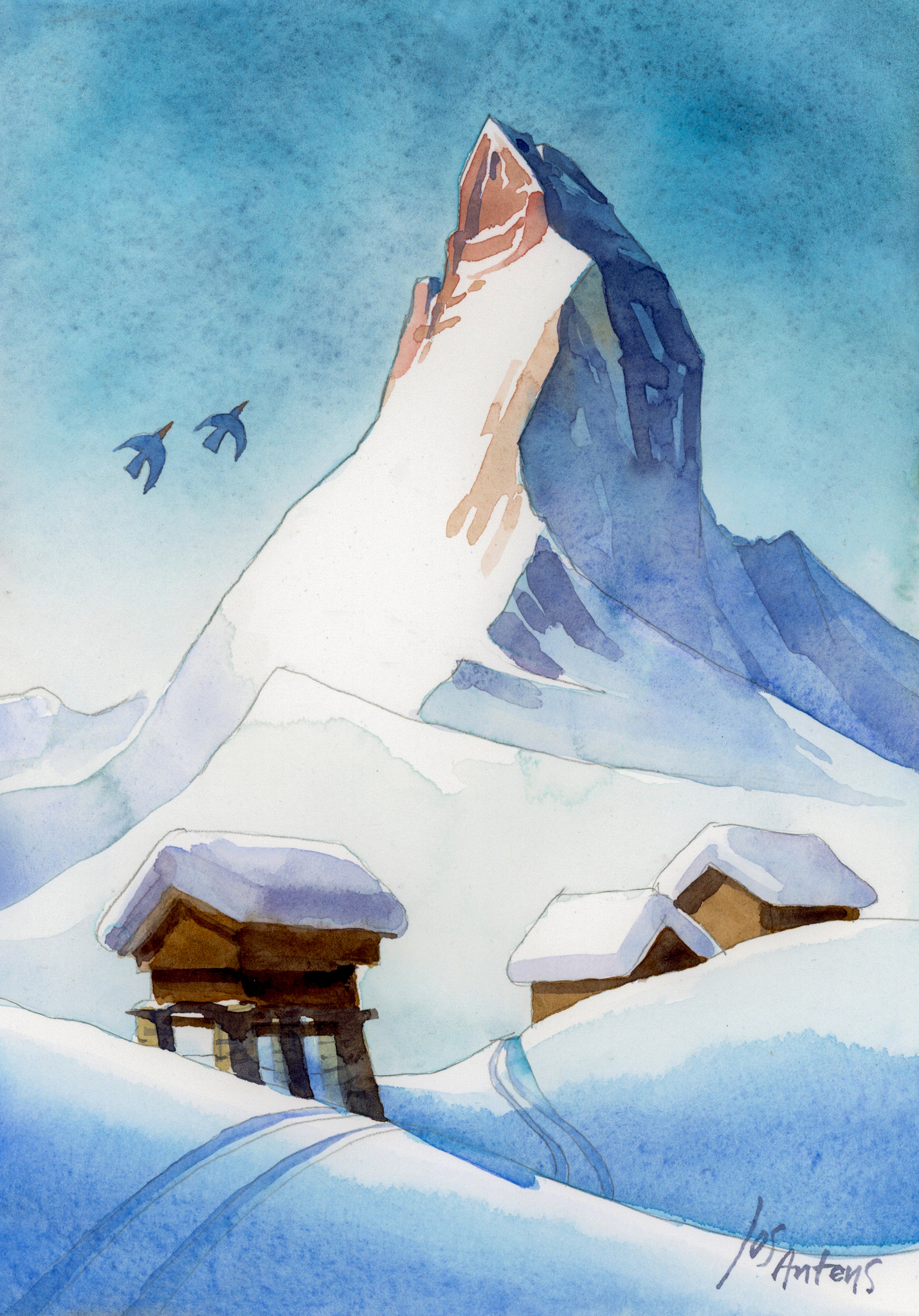 Ik ben dit jaar begonnen met wat aquarellen in winterse omstandigheden van de Matterhorn