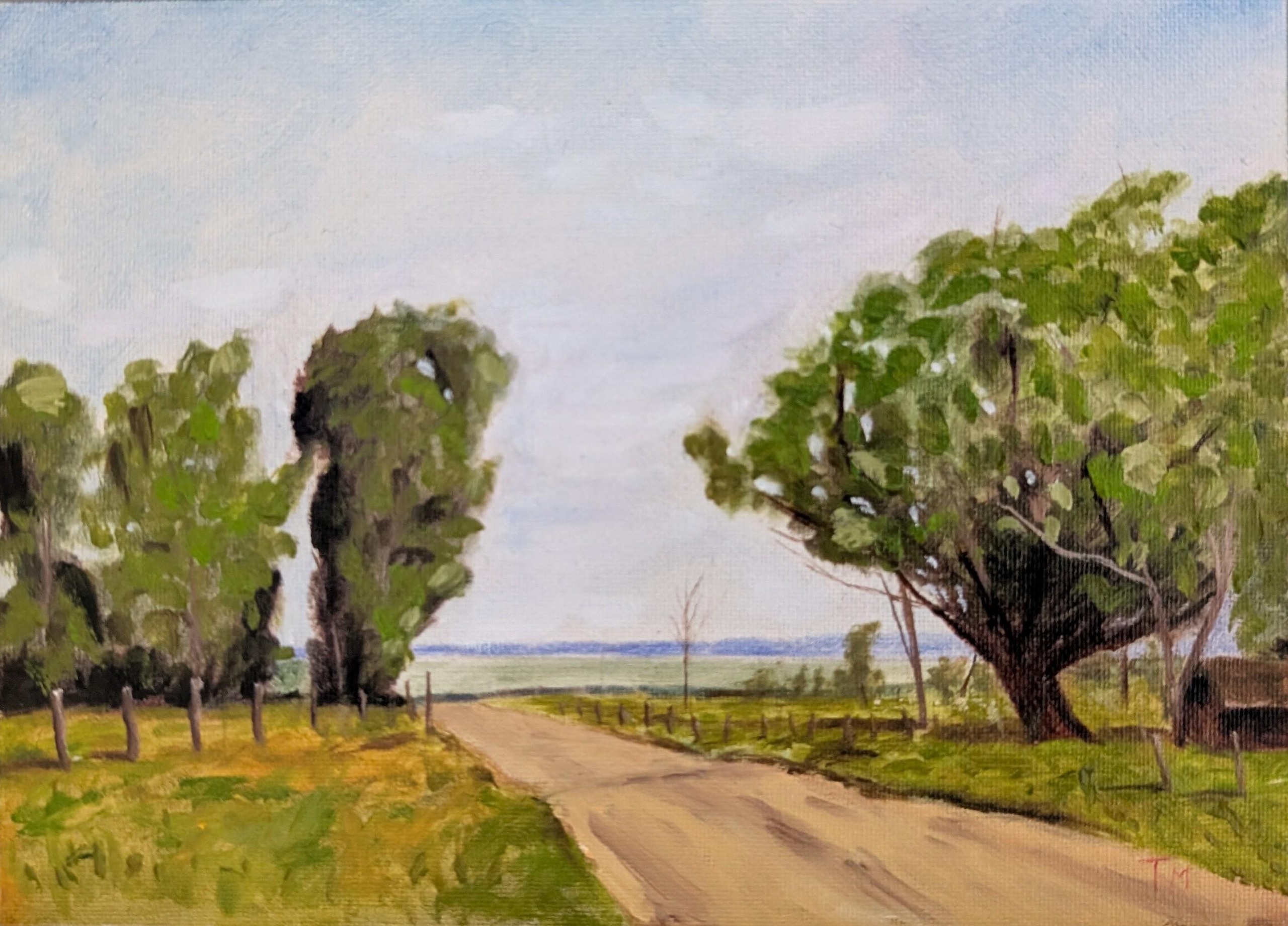 miniatuurschilderij met boerenlandweg