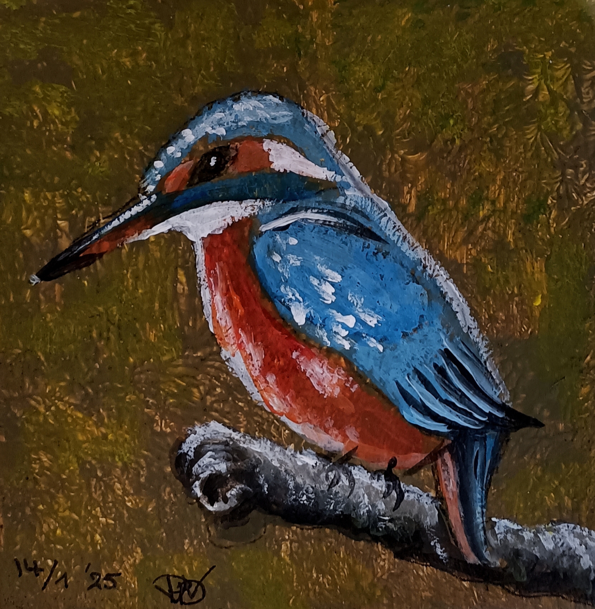 Een ijsvogeltje geschilderd op een tegeltje t.b.v. een verkoop en geldinzameling voor de een nieuwbouw van het hospice in Woerden.