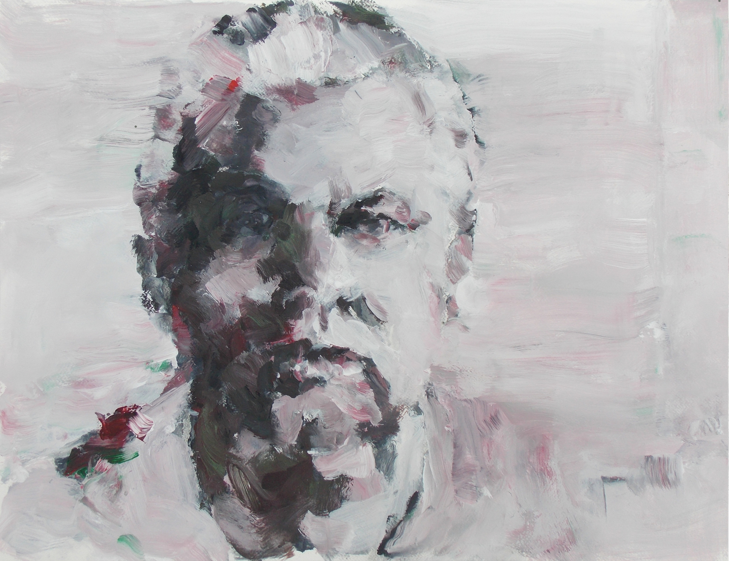 Het ´vertrekpunt´ voor een tekening of schilderij is vaak de zg. ´mugshot´, kale ongesmukte foto´s van boef(jes) en kleurrijke figuren.Niet om te portretteren maar een zoektocht totdat de lijn of verfstreek op de goede plek staat.