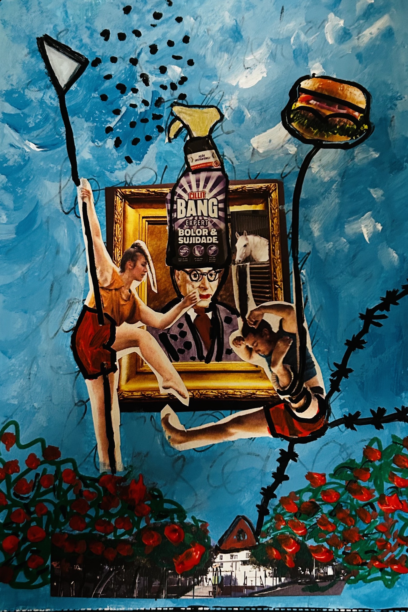 Bang Collage Vrouw Woman Blauw Blue Dots Rood Red House Huis