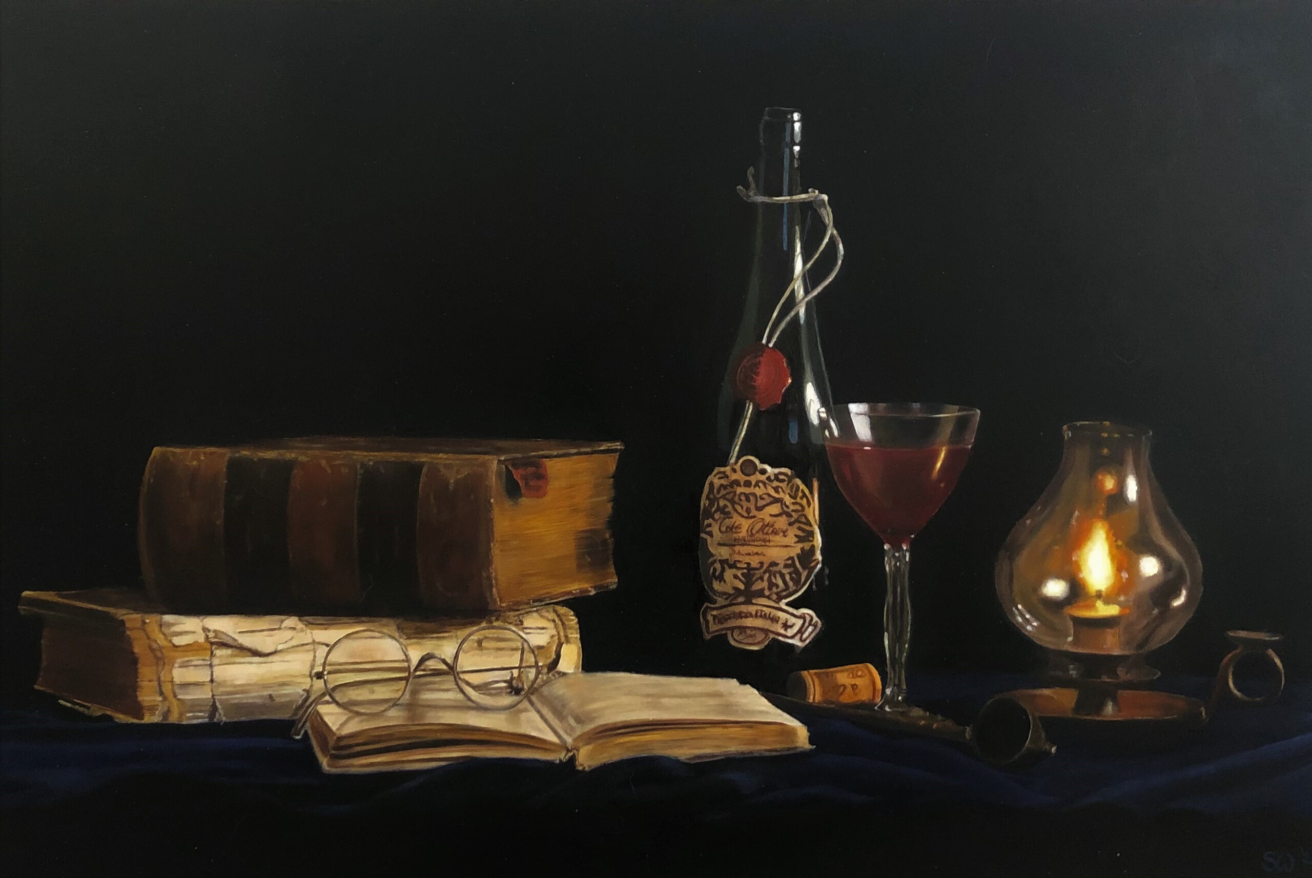 Dit schilderij was mijn eindwerkstuk van de academie. Het kaarslicht geeft een intieme sfeer.