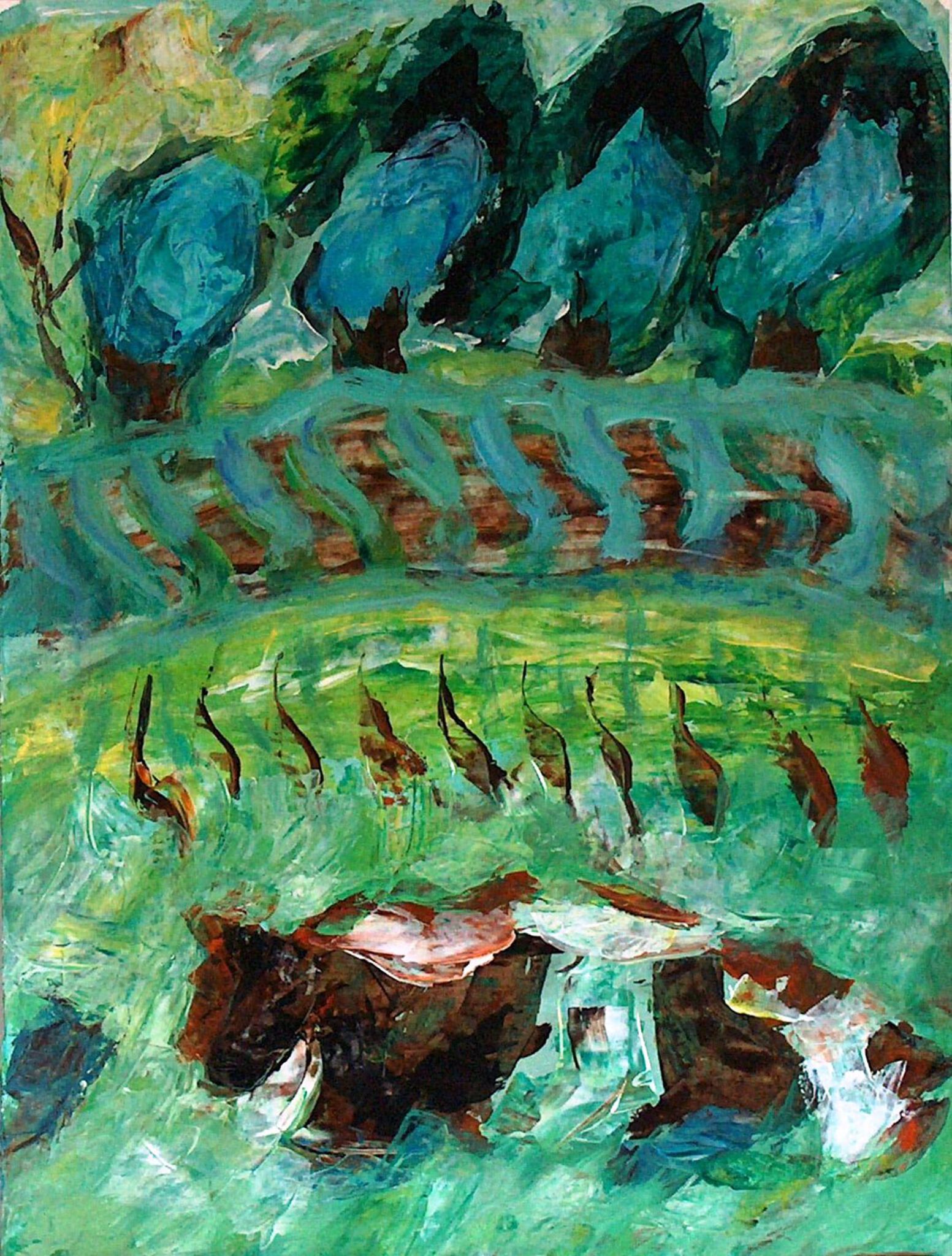 Mijn werk is ontstaan uit noodzaak om mijn ’denken’ en ‘zijn’ vast te houden in de tijd, een spoor te trekken, met het leven zelf als nooit aflatende drijvende kracht?
