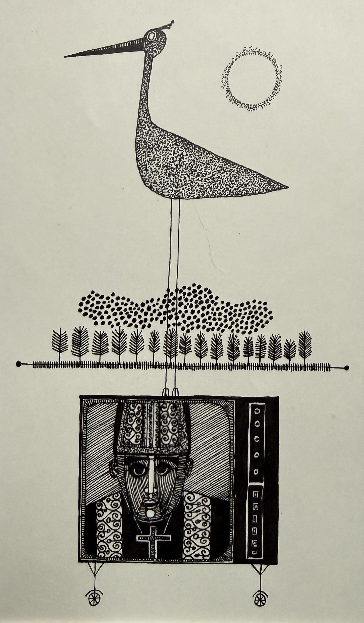 Pentekening, kroontjespen, penseel, Oost-Indische inkt, ivoorkarton.