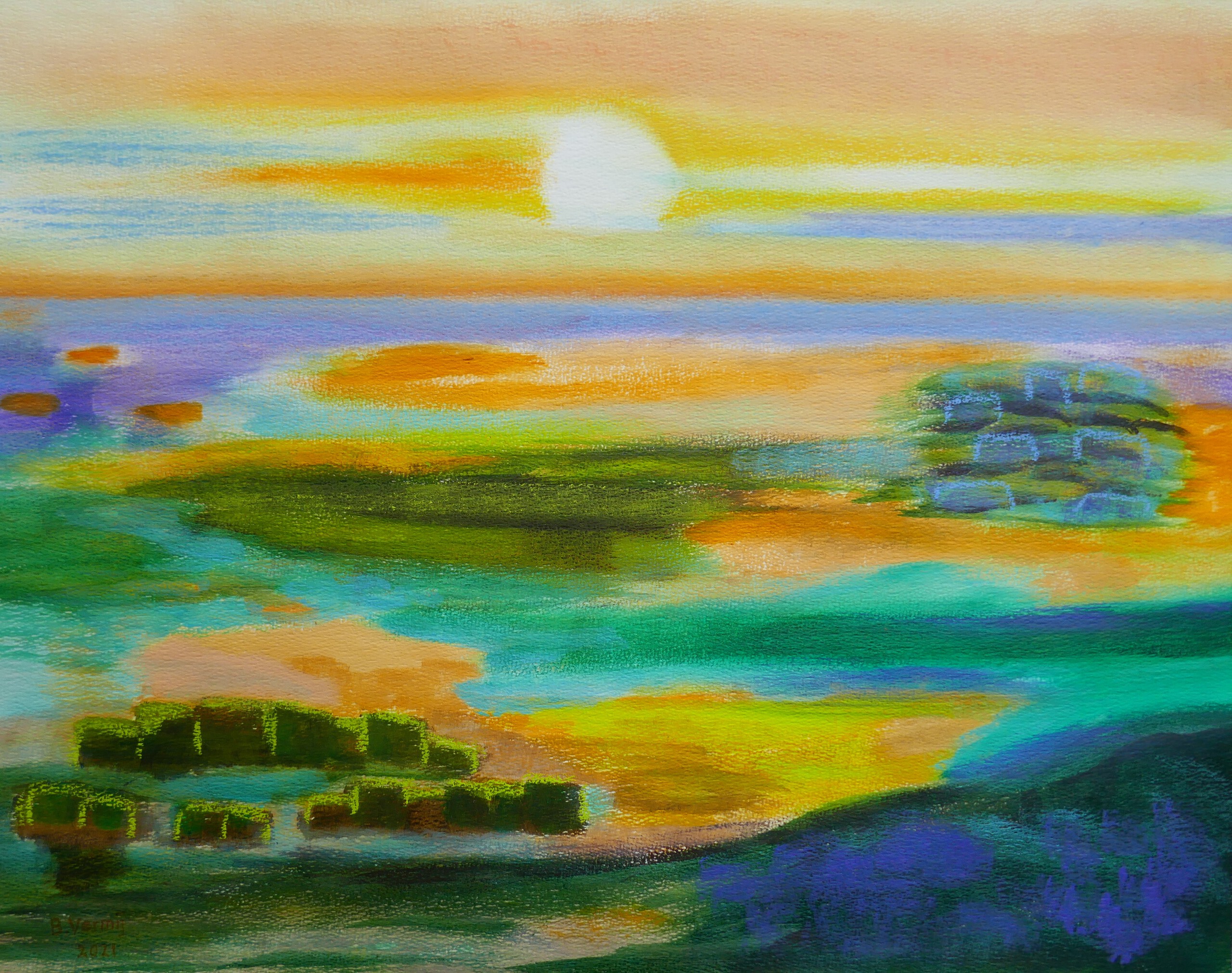 Schilderkunst Acryl Acrylverf Papier Natuur Landschap Figuratief Kleurrijk