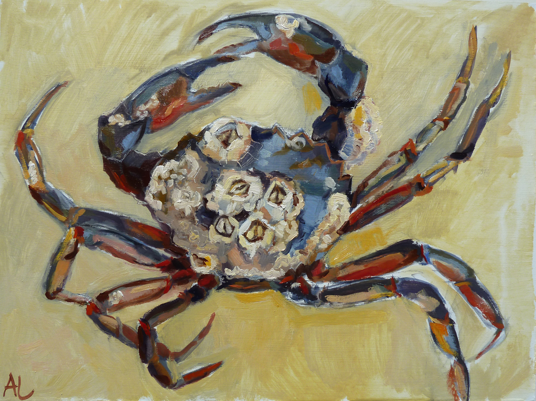 'Strandkrab' fascinerend hoeveel kleuren een krab kan hebben, gevond op het strand van Egmond aan Zee, vereeuwigd in olieverf.