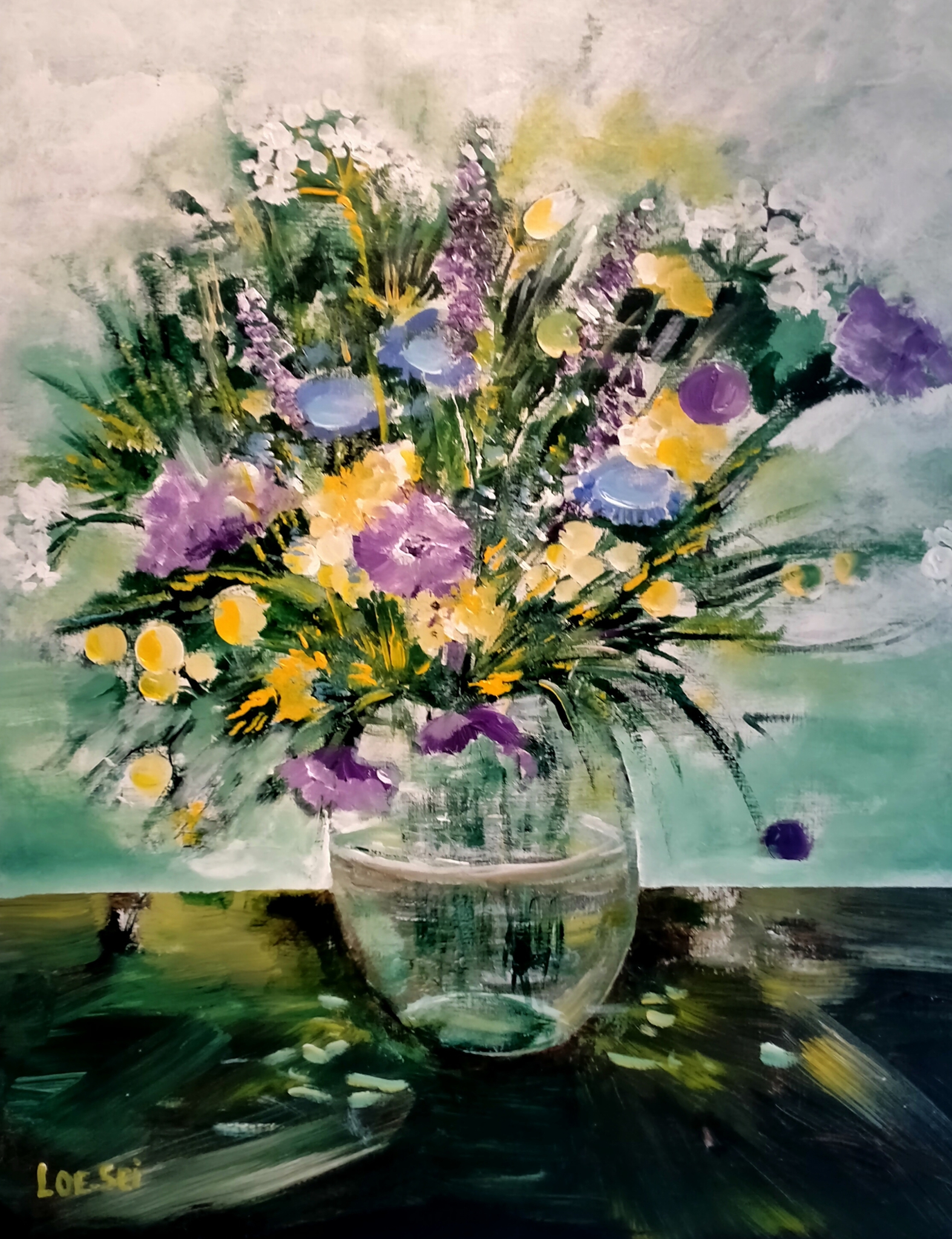 Loe-Sei schildert op grote doeken en heeft een kleurrijke, losse stijl. Het werk is impressionistisch te noemen. Zij is geboren in Eindhoven in 1947 . Grote doeken met vooral bloemen