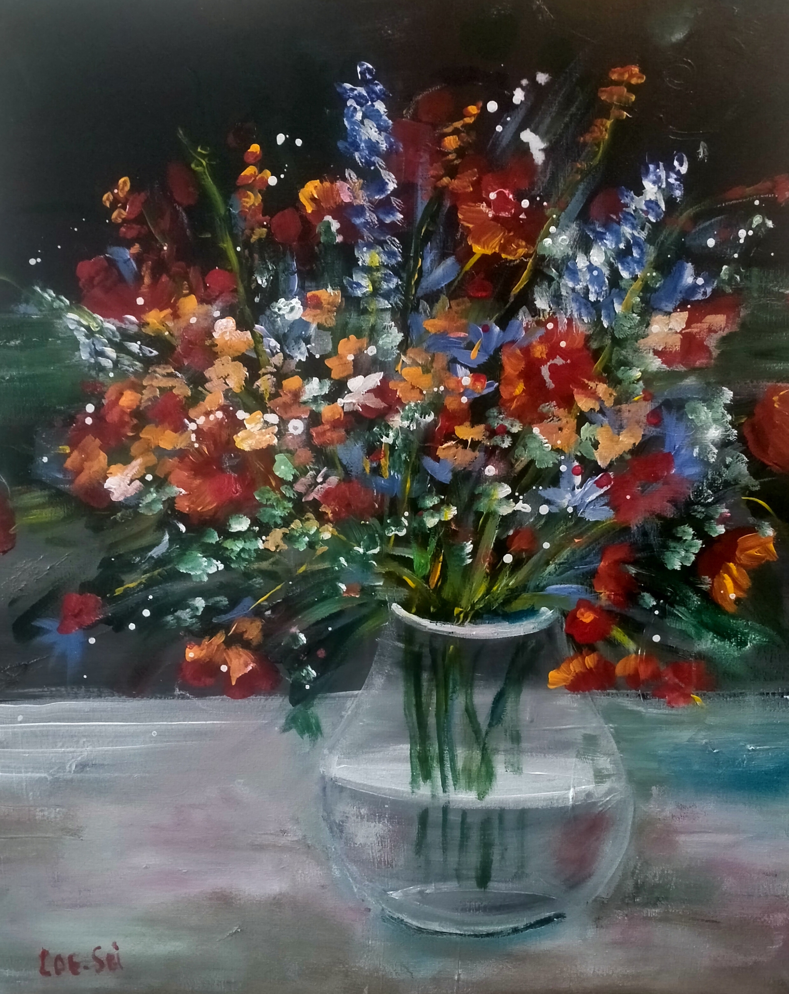 Loe-Sei schildert op grote doeken en heeft een kleurrijke, losse stijl. Het werk is impressionistisch te noemen. Zij is geboren in Eindhoven in 1947 . Grote doeken met vooral bloemen